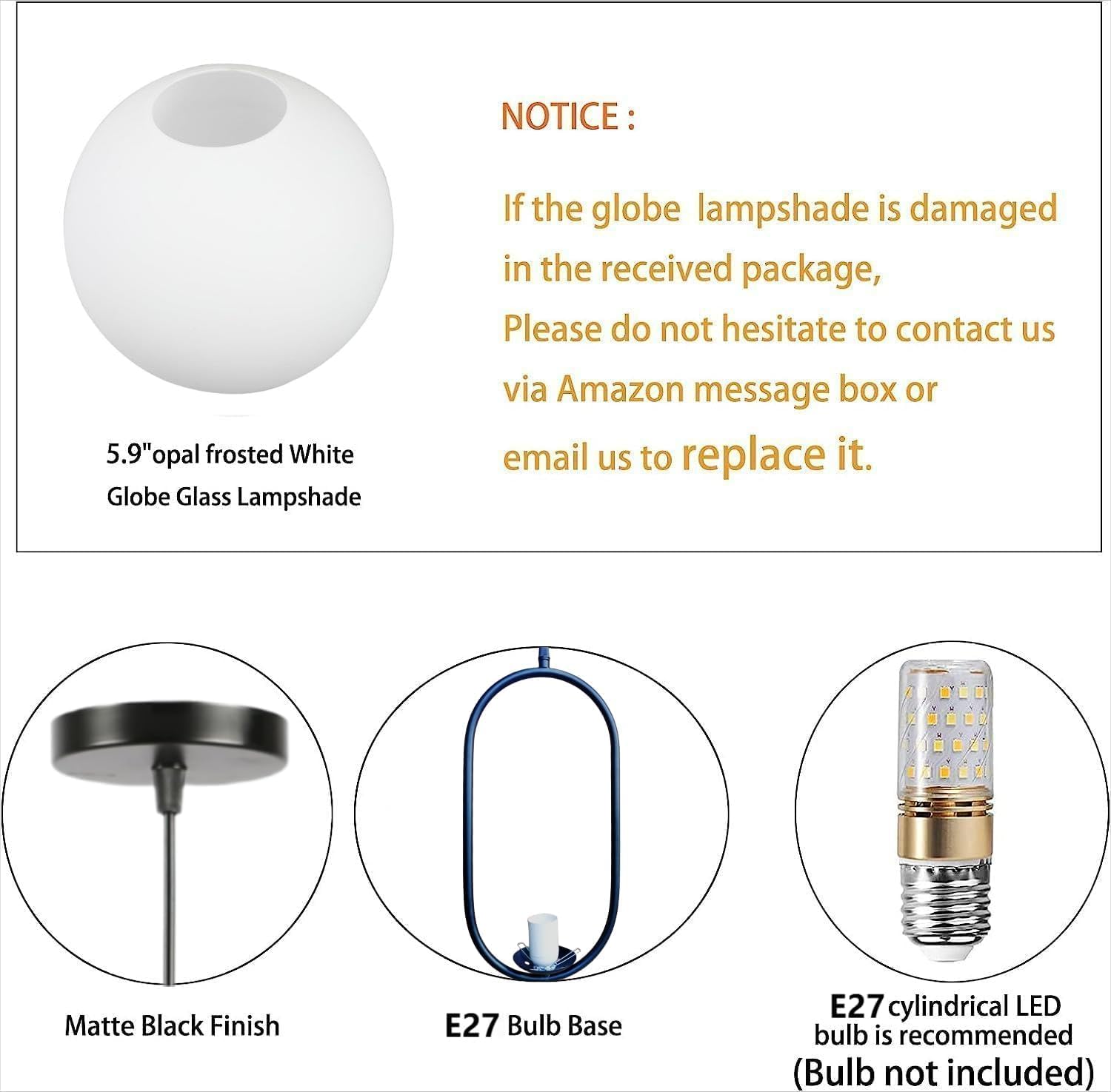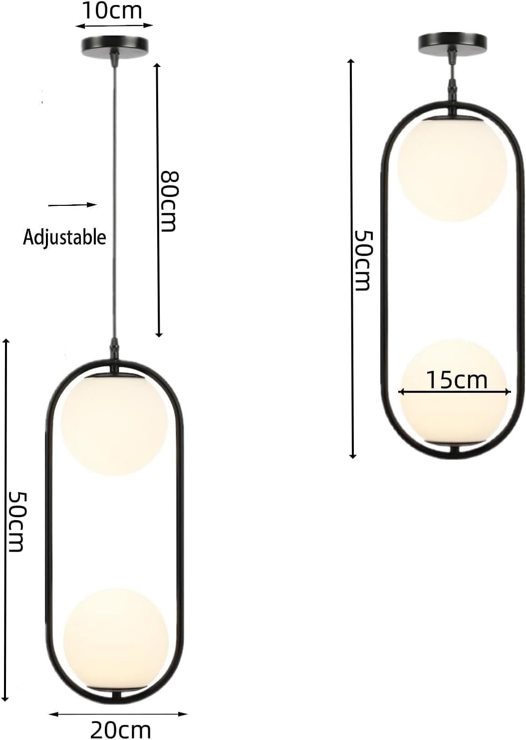 - 【2 Lights Modern Ball Chandelier】Crafted from sturdy metal, featuring matte black finish with 2 white globe glass Lampshade, no need to worry about getting oxidation and color fading. Simple and elegant,Perfect for mid-century decoration styles and combines the contemporary and retro style.