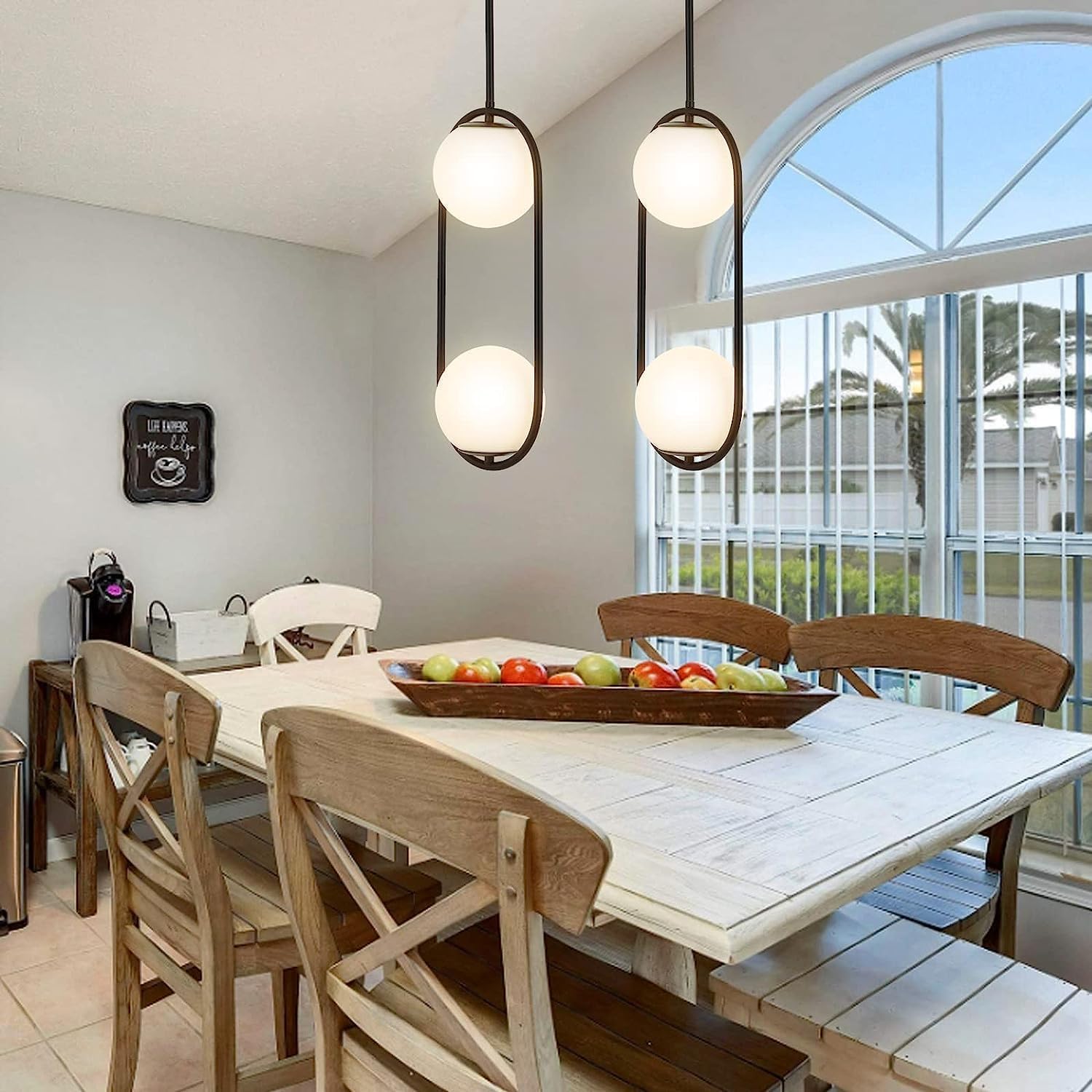 - 【Chic Design & Wide Application】This industrial chandelier light is hard wired light fixture, with classy design of openwork durable metal oval circle to house 2 white globe glass lampshade in the central,.Ideal for indoors as a dining room pendant light, kitchen island, living room, restaurant, bedroom, dining room, balcony, passageway, corridors, meeting room, office, bar etc.