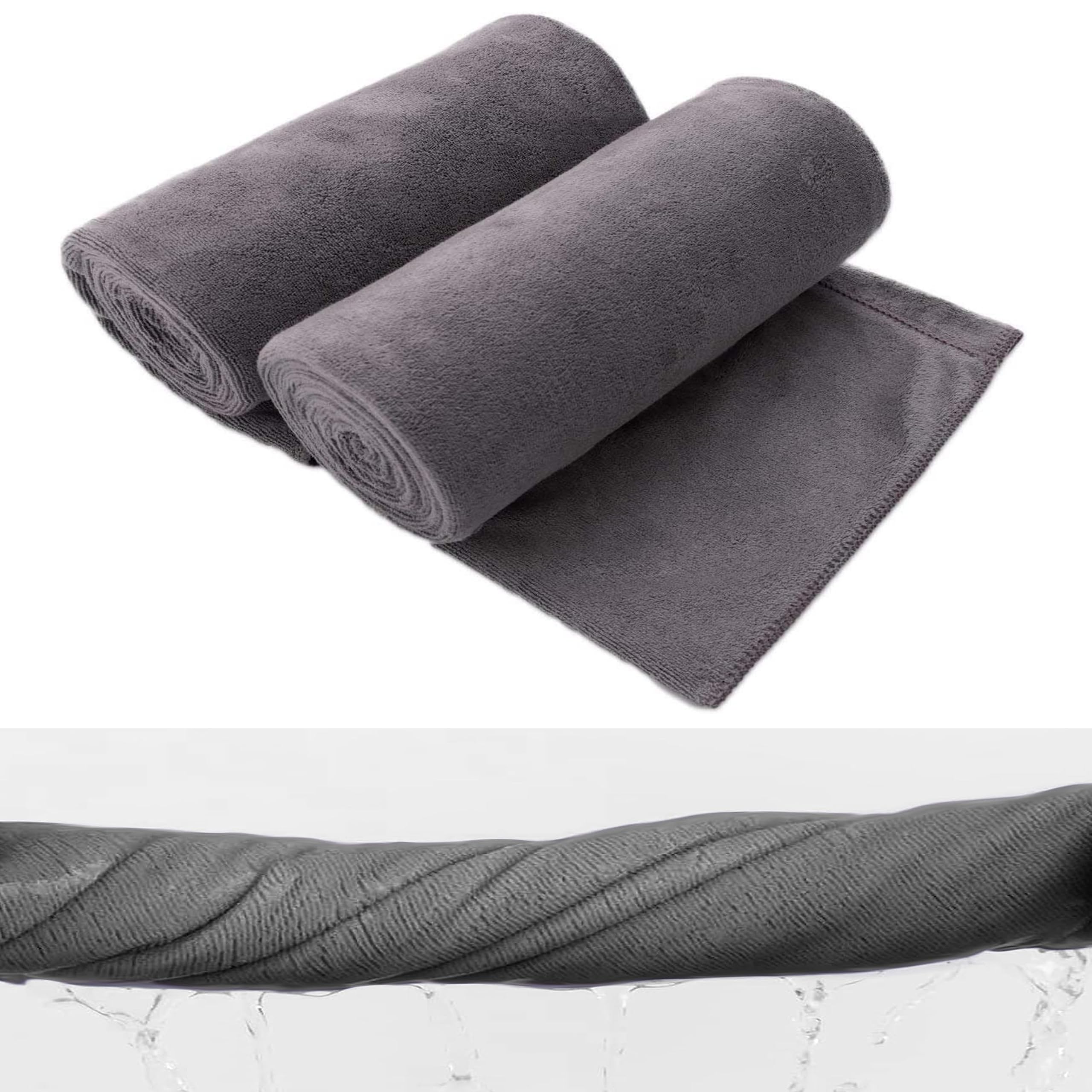 2Pack Microfiber Magic Bath Towels Set, Quick Drying, Multipurpose Sweat Towel Super Soft and Extra Absorbent Use as Bath Fitness Towel, Sports Towels, Yoga Towel (Microfiber Grey, 90x180 cm)