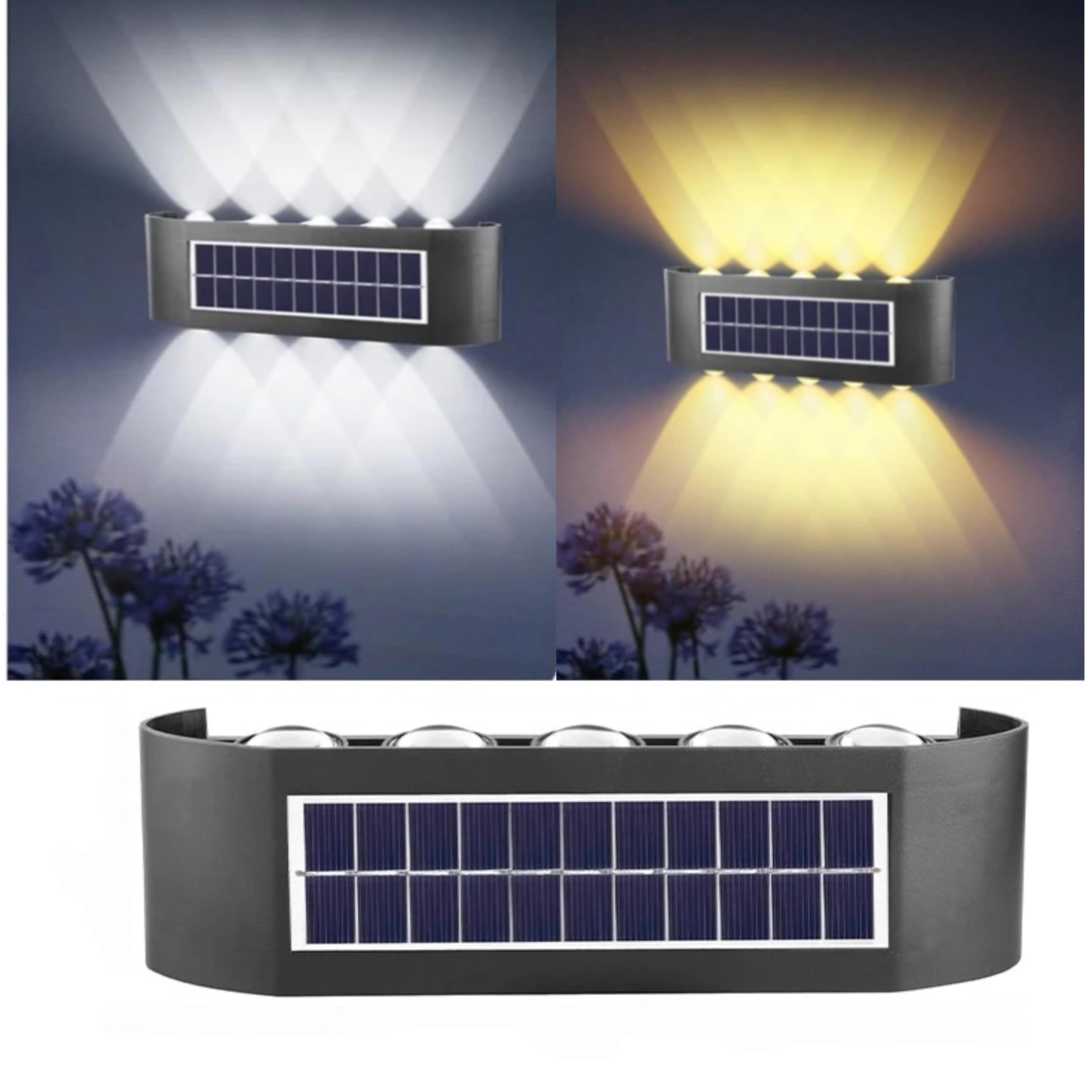Up and Down solar Wall lights have warm&white 2 modes lighting and color gradiant and fixed 1 color for your choose, provides soft illumination. These solar up down wall lights outdoor are perfect for chicken coop, birds, barn and garden, which is not too bright but enough to light up the small space.