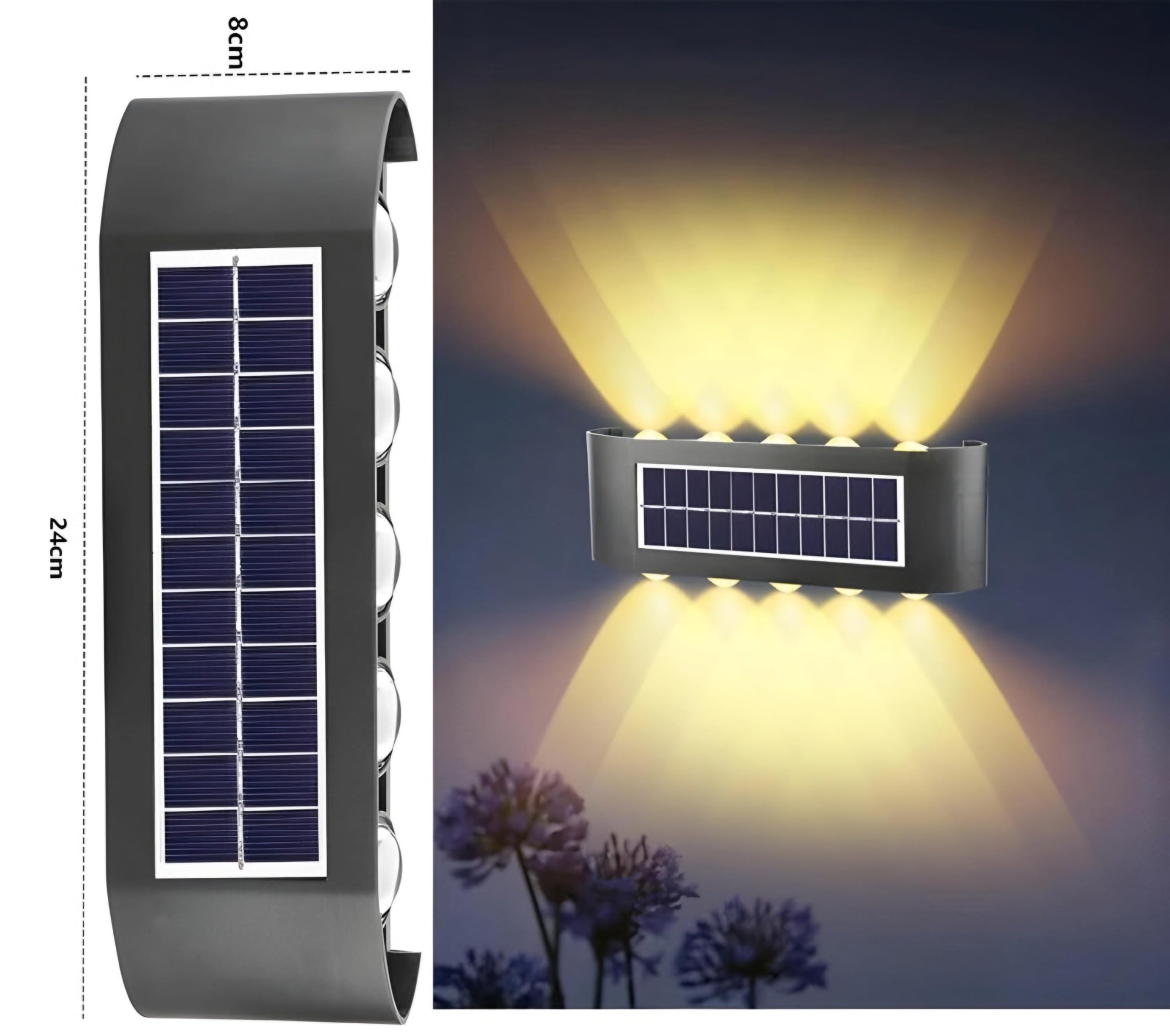 - Outdoor Waterproof Design:The solar wall lamp with IP65 waterproof design makes it safer and more secure to use in rainy or snowydays as up and down luminous lighting