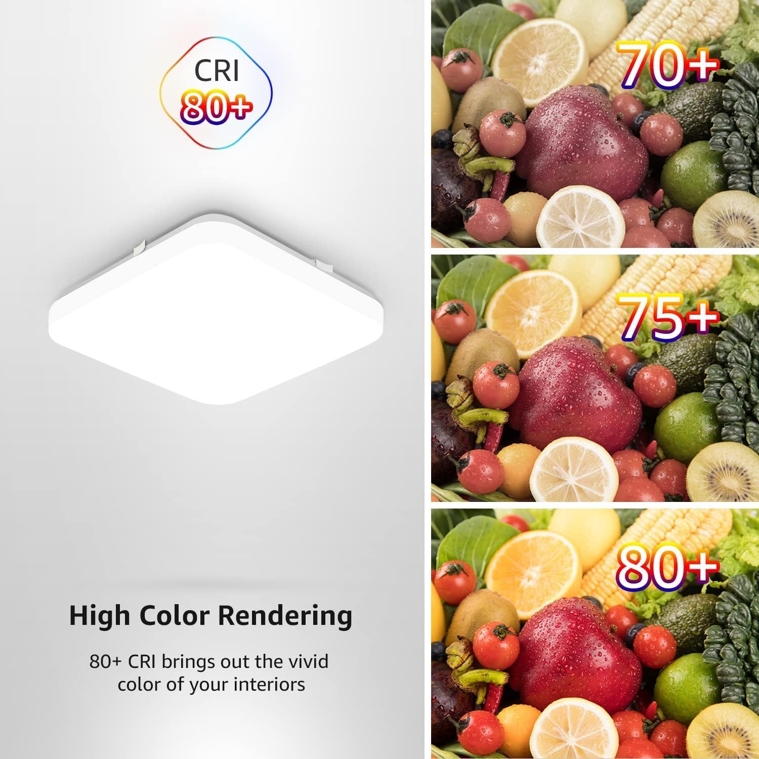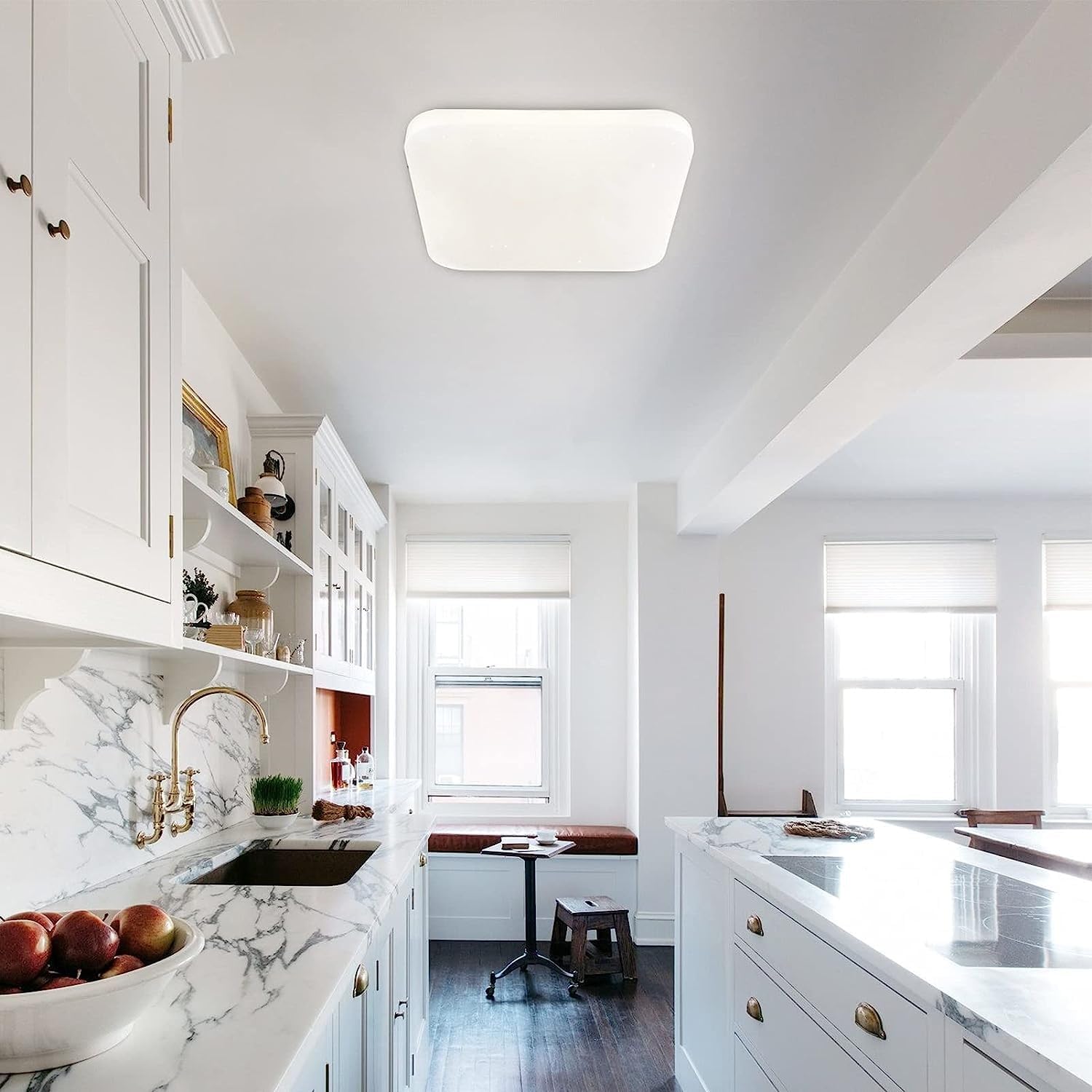 - 【☄NO FLICKER & EYE PROTECTION】LED Flush Mount Ceiling Light adopts the plastic white lampshade and qualified LED chips, it lights uniformly without flicker, protecting your eyes from harsh and glaring lights.