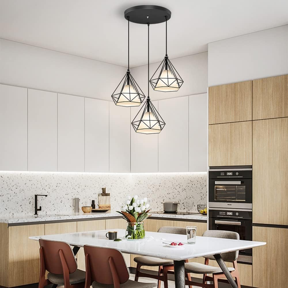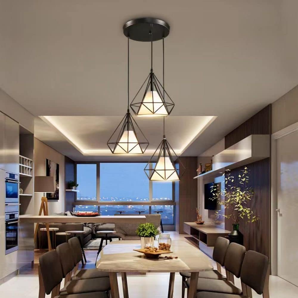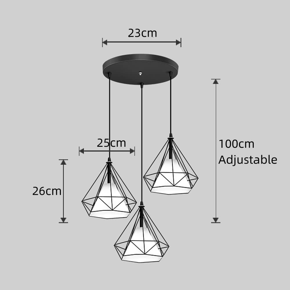 3-Light Pendant Light Fixture Modern Hanging Lamp Adjustable Height Diamond Shape Ceiling Light for Kitchen Island Dining Room Living Room Bedroom