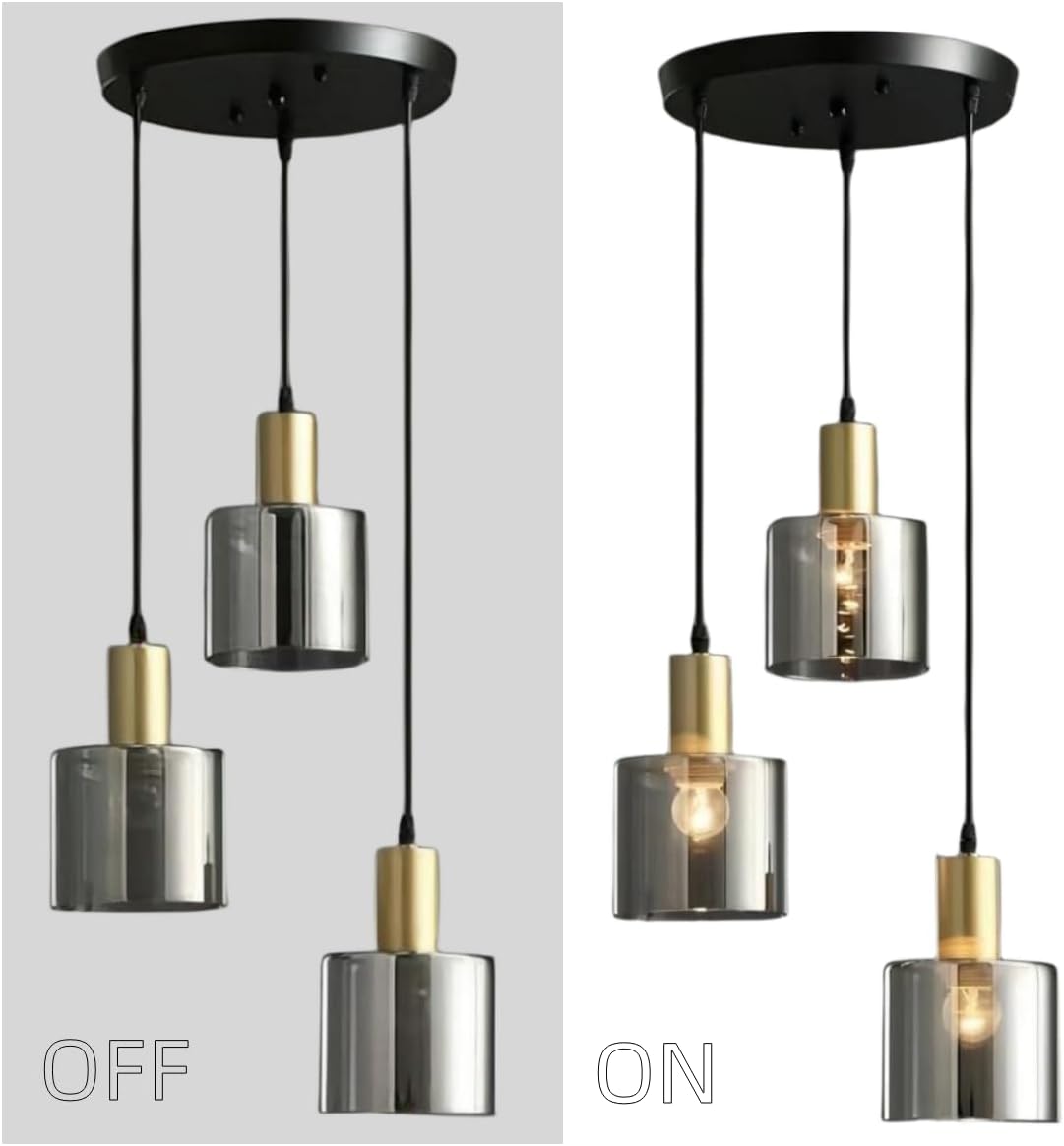 3-Light Smoke Gray Glass Pendant Light,Modern Glass Hanging Light Chandelier for Living Room Dining Room Bedroom Kitchen Island
