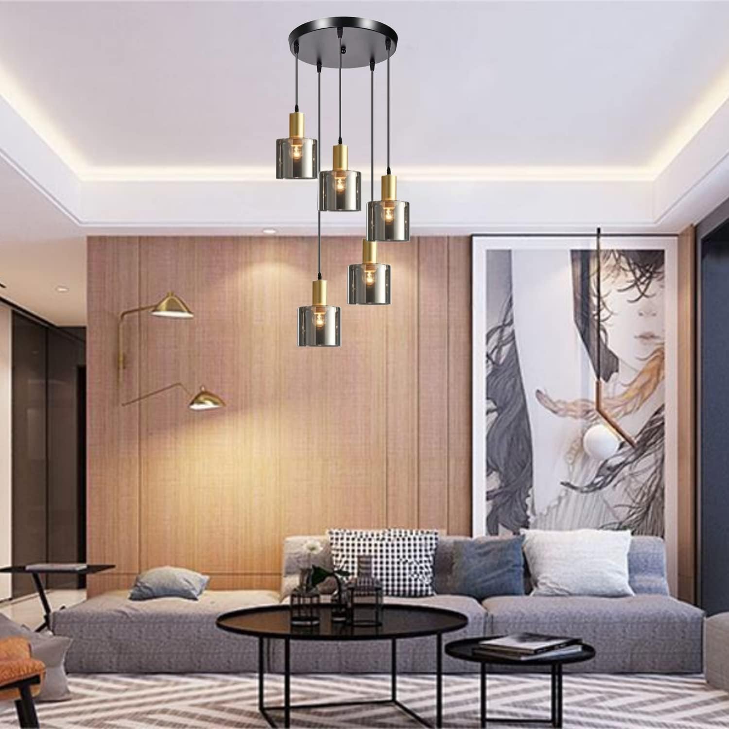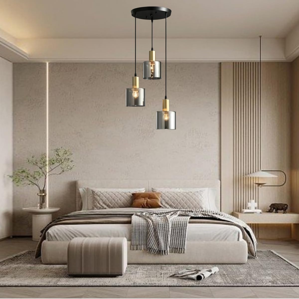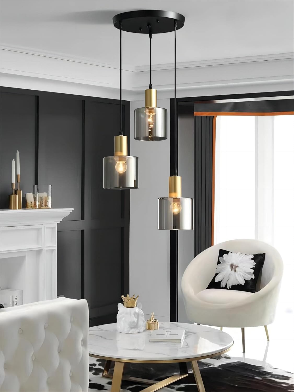 - 【Adjustable Height & DIY Design】: The pendant light come with three same cables length which can be adjusted by unscrewing the 3 tightening caps according to your preferences and design to fit your ceiling height needs. You can hang higher or lower as you want, compatible with different types of ceiling designs such as vaulted ceilings, sloped ceilings, and flat ceilings.