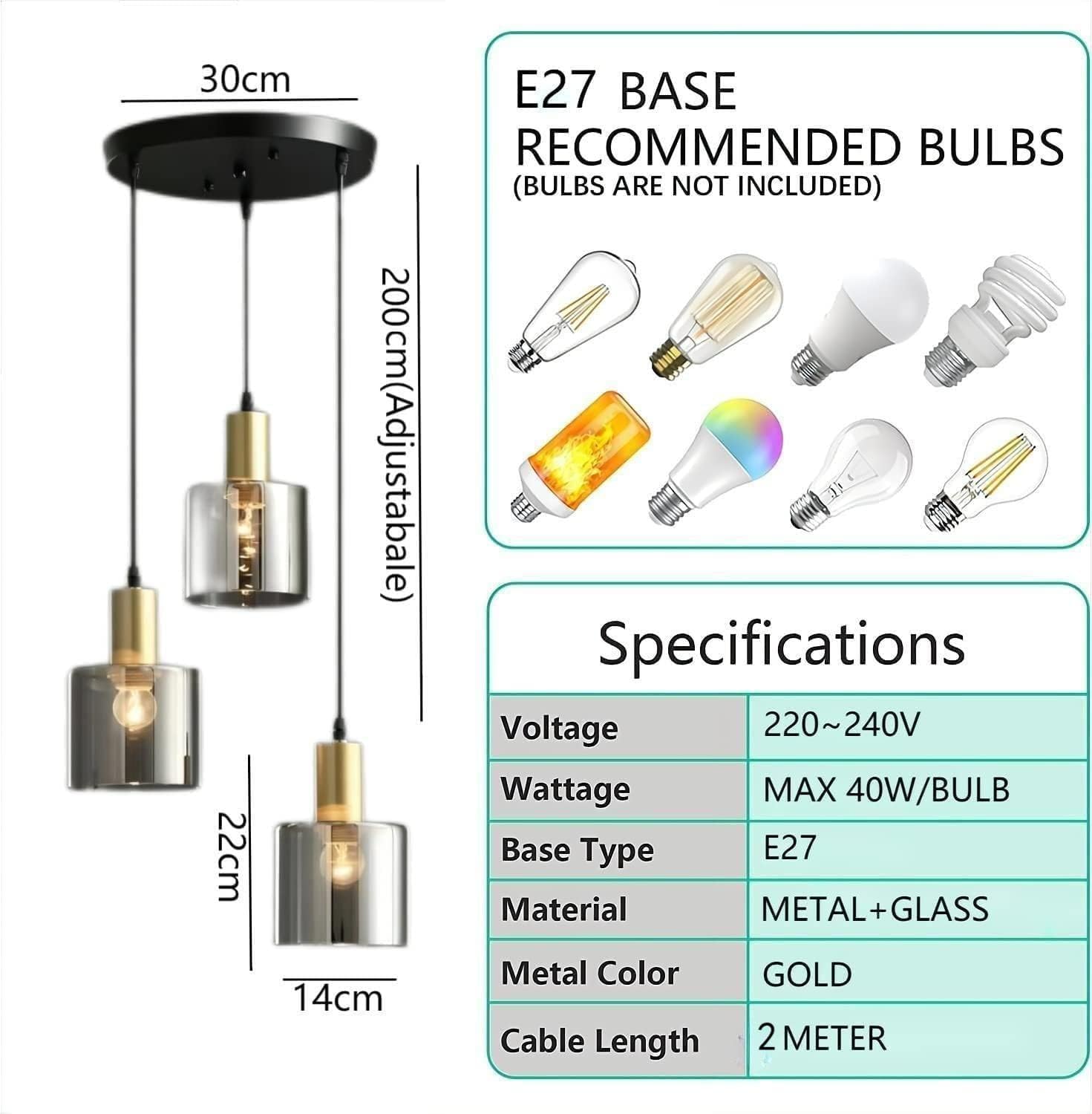 - 【Bulb Requirements】: You can use any E27 standard base bulbs (Max 40W for each bulb) such as LED, CFL, incandescent, and halogen bulbs for these kitchen lights ceiling. Bulbs are not included, need to purchase them separately. You can choose different style bulbs and color temperatures to create multiple atmospheres in your house.