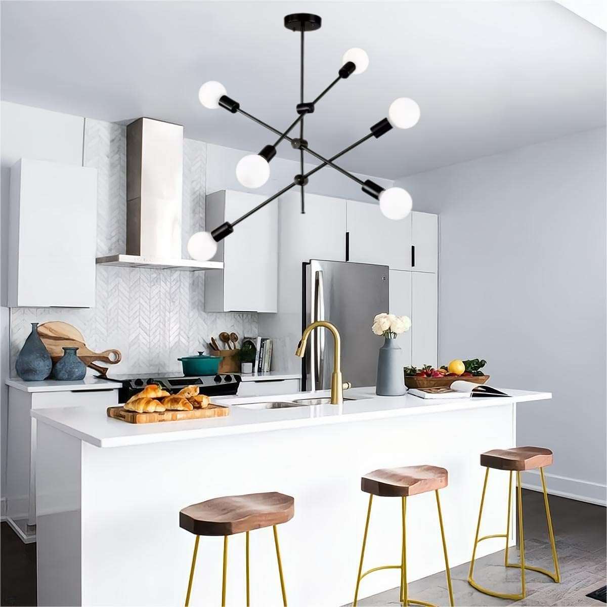 Chandelier 6-Light Black Ceiling Lighting Mid-Century Pendant Light Fixture for Kitchen Island Dining Room Living Room Bedroom