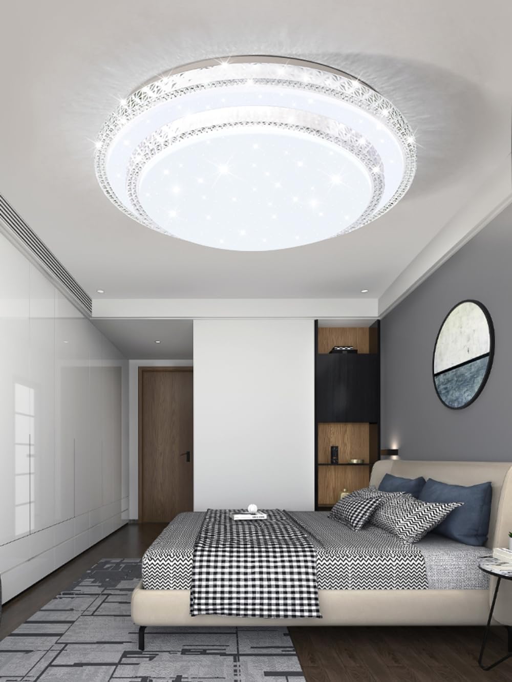 Flush Mount Double Layer Crystal Ceiling Lamp, 3-color Modern Simple LED Ceiling Light for Bedroom Living Room Dining Room(50cm)