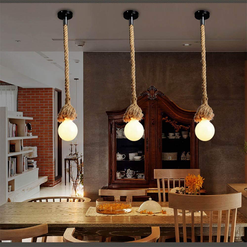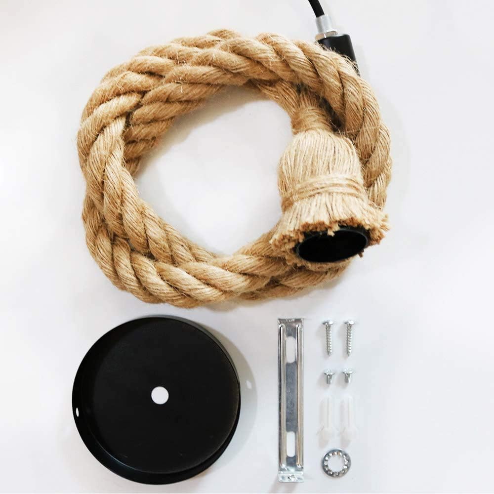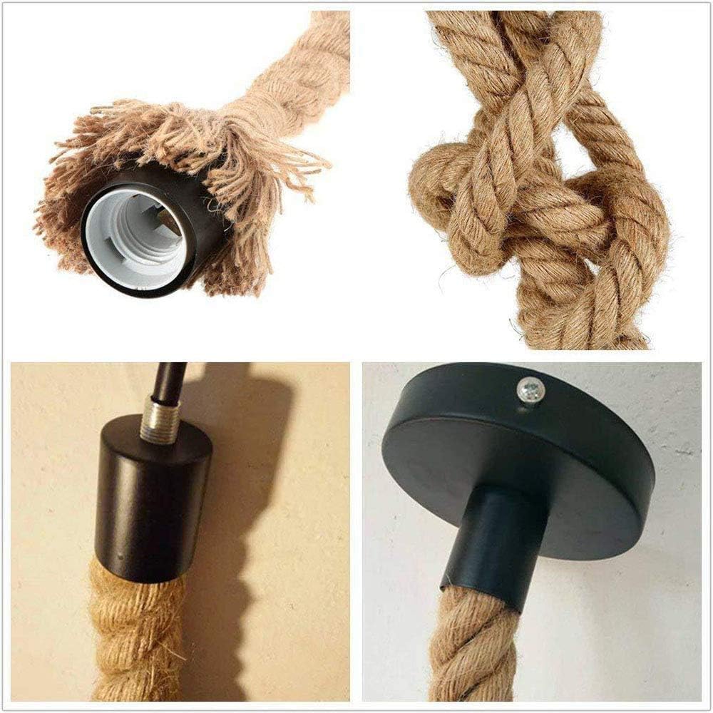 GrowtherHome Retro Hemp Rope Chandelier, E27 Lamp Holder - 200cm