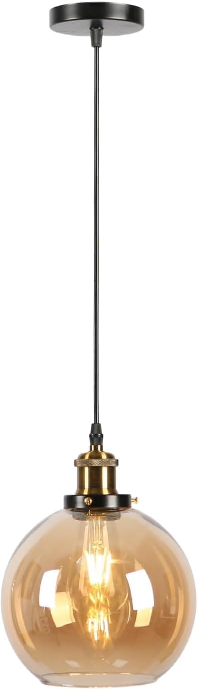 Industrial Glass Pendant Light, Amber Globe Glass Ceiling Light, Pendant Lighting Fixture for Loft Kitchen Island Dining Room Living Room (1-Light)