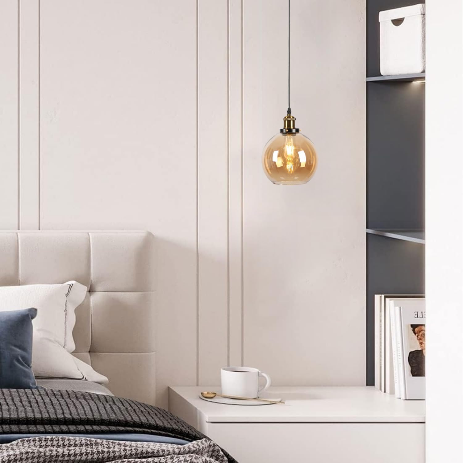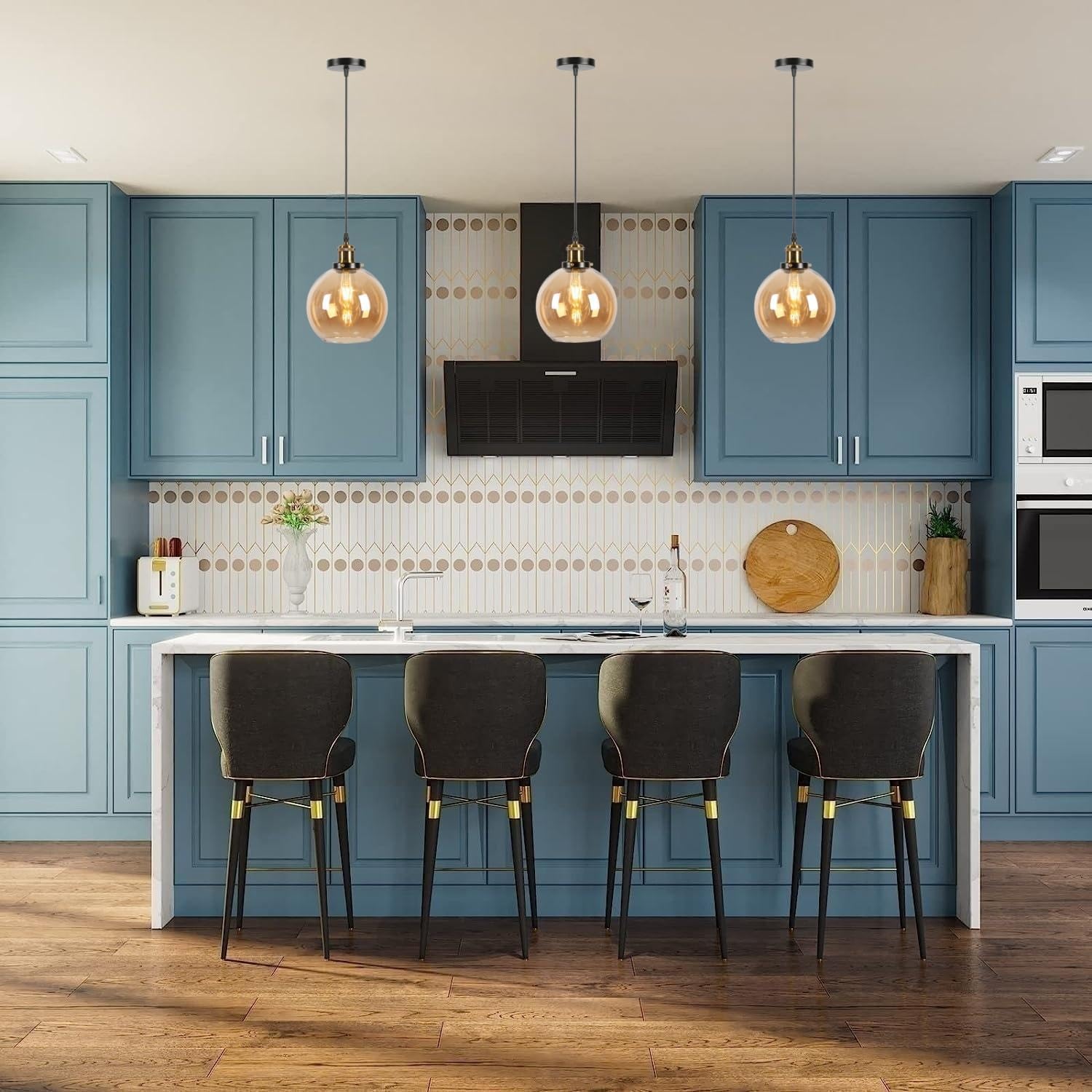 - 【Well Made & Unique Desigh】This globe pendant lights kitchen island is mouth-blown by a skilled craftsperson and the lampshade rim is smooth, not hurting your hands.The amber globe glass lampshade reveals the bulb and maximizes its light to create the room of your dreams.This kitchen island pendant lights is perfectly fit with any style,from modern to vintage.