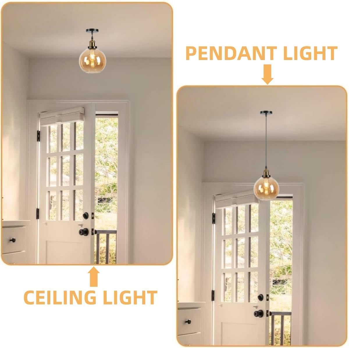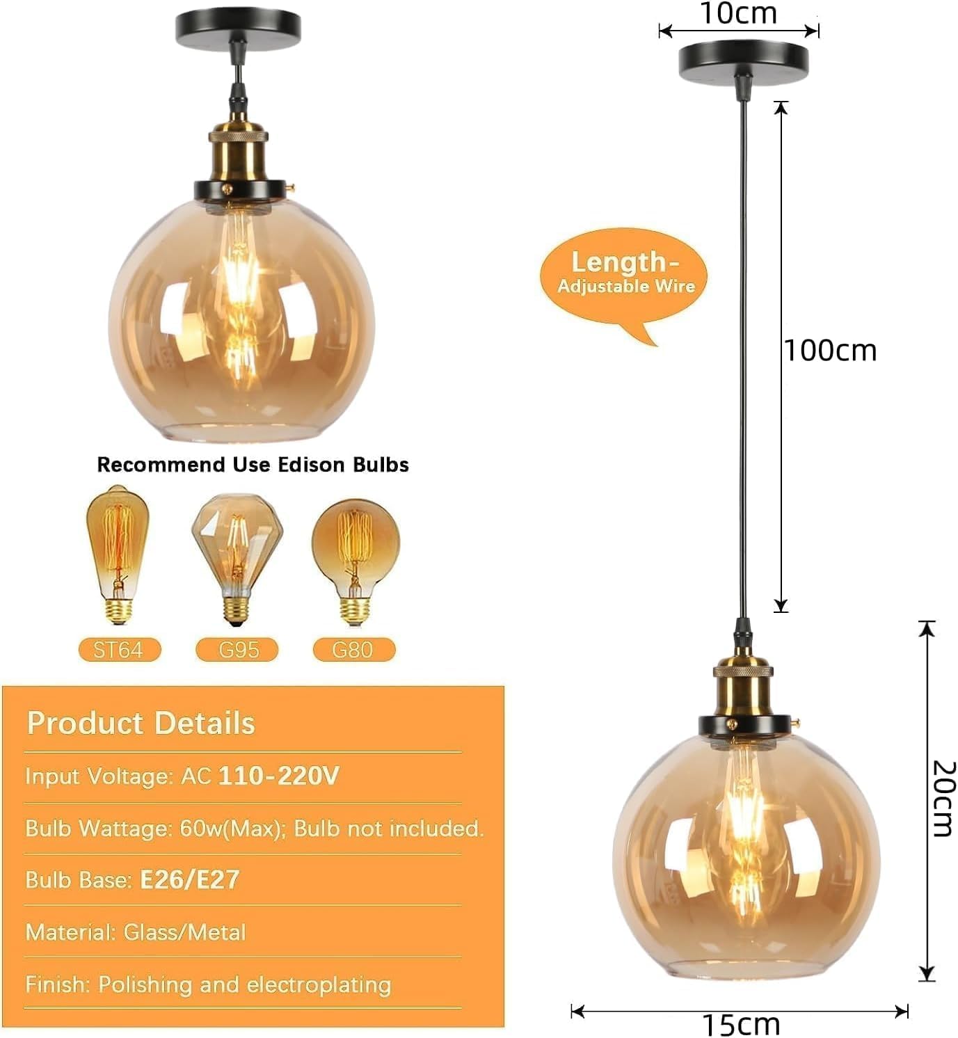 - 【Adjustable Cord Length】This amber globe pendant light cord length total is 1meter.You can easily adjust the length of light cord to fit your room lighting needs so globe pendant light fixture can be used as a pendant light or a ceiling light.