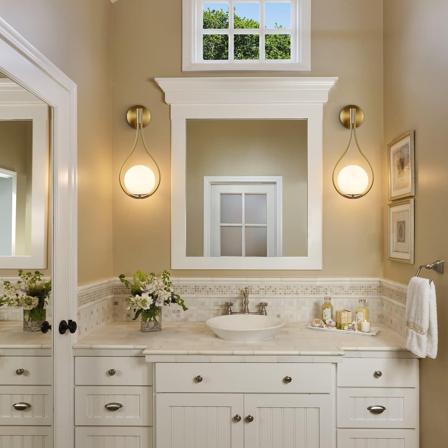 Wall Sconce Lighting Brushed Brass Vanity Bathroom Wall Light Frosted White Glass Globe Wall Sconce Industrial Indoor Wall Lamp for Living Room