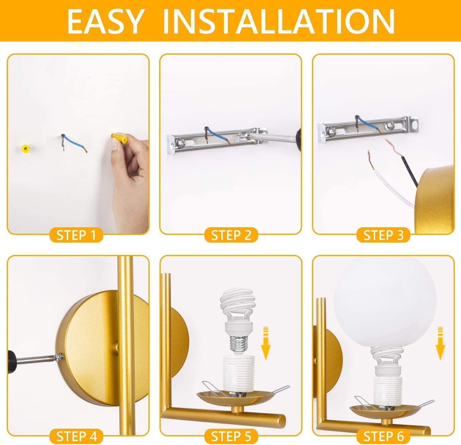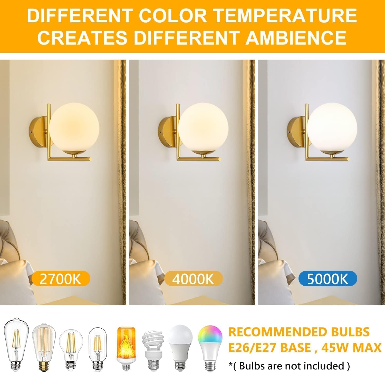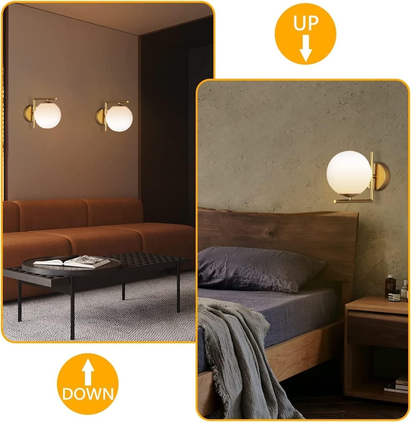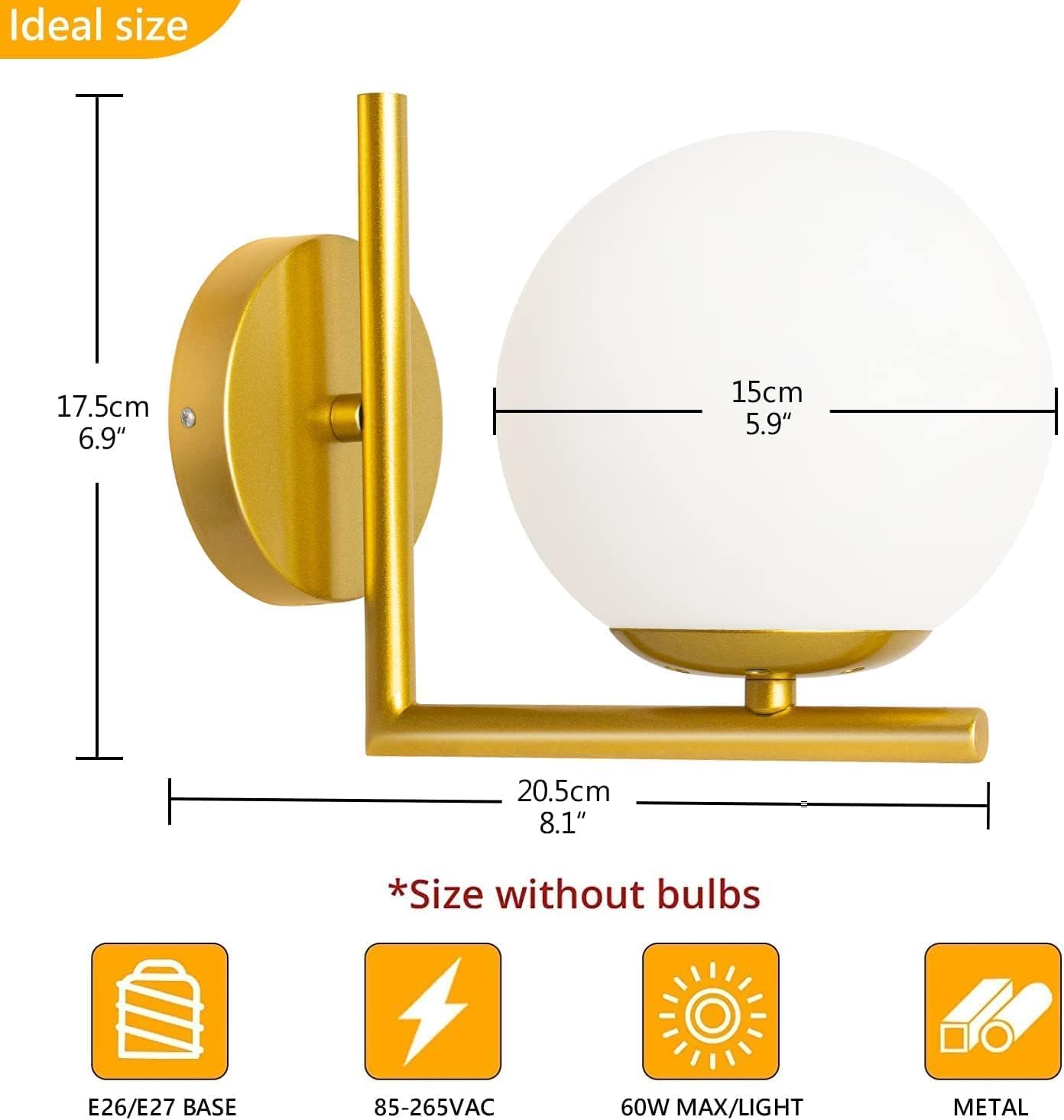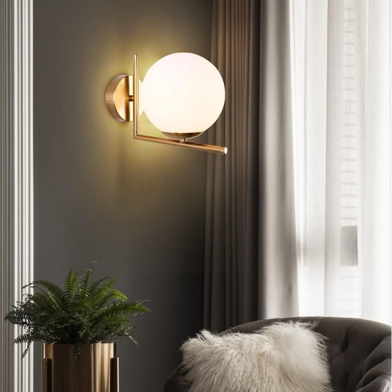 Mid Century Modern Gold Wall Sconce Lighting Brushed Brass Vanity Bathroom Wall Light Frosted White Glass Globe Wall Sconce Industrial Wall Lamp for Living Room Bedroom Bedside