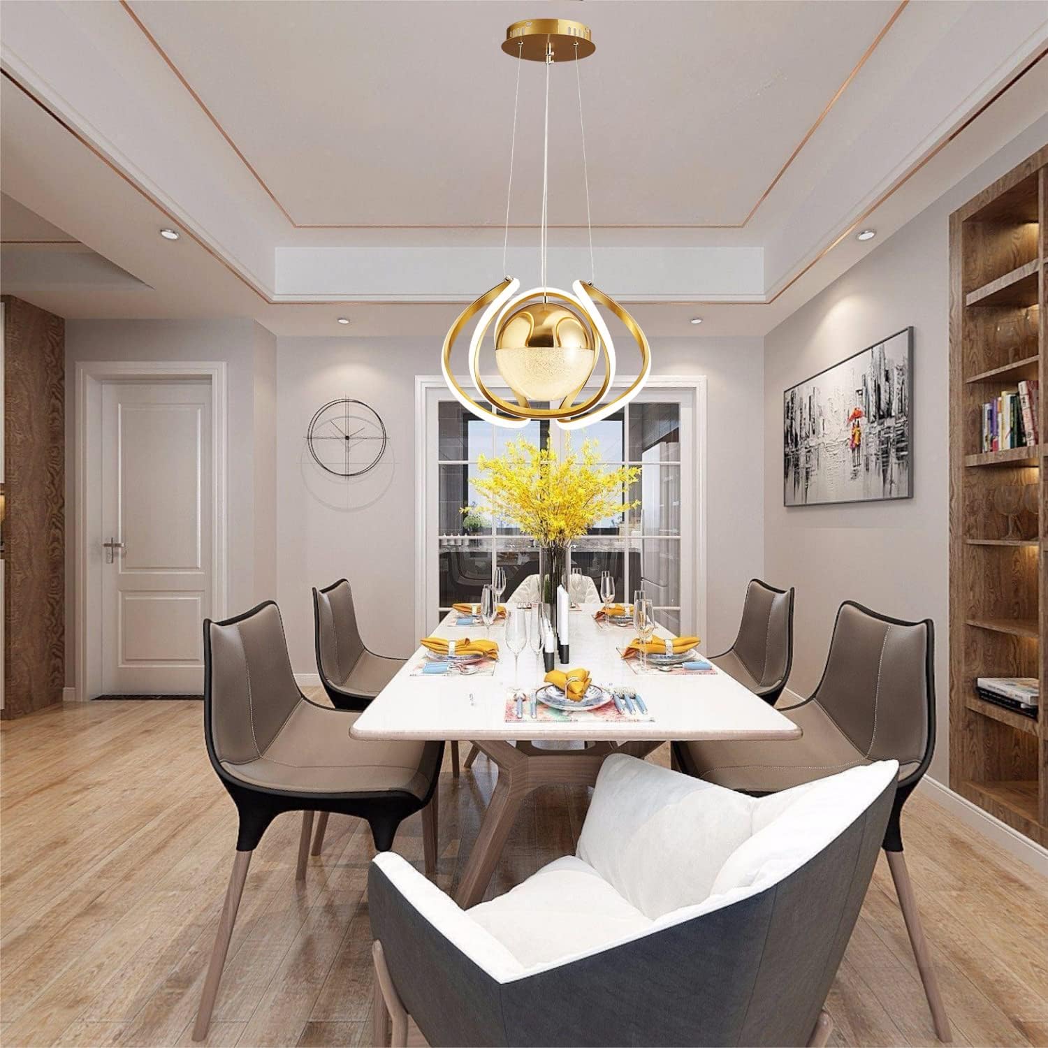 Modern 3-Color LED Chandelier,Gold Chandelier Light Fixture Dining Room Hanging Lamp,Adjustable Height Ceiling Pendant Light for Living Room