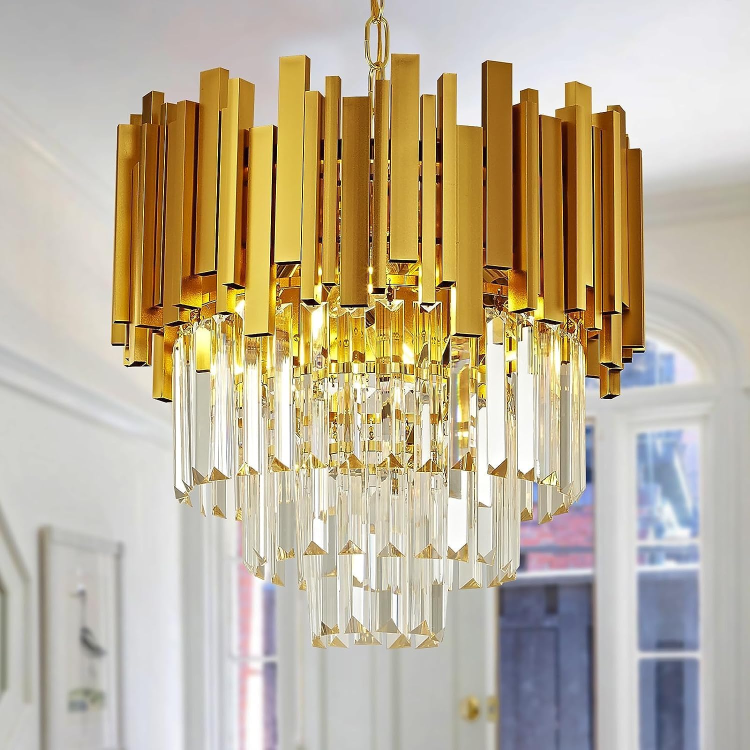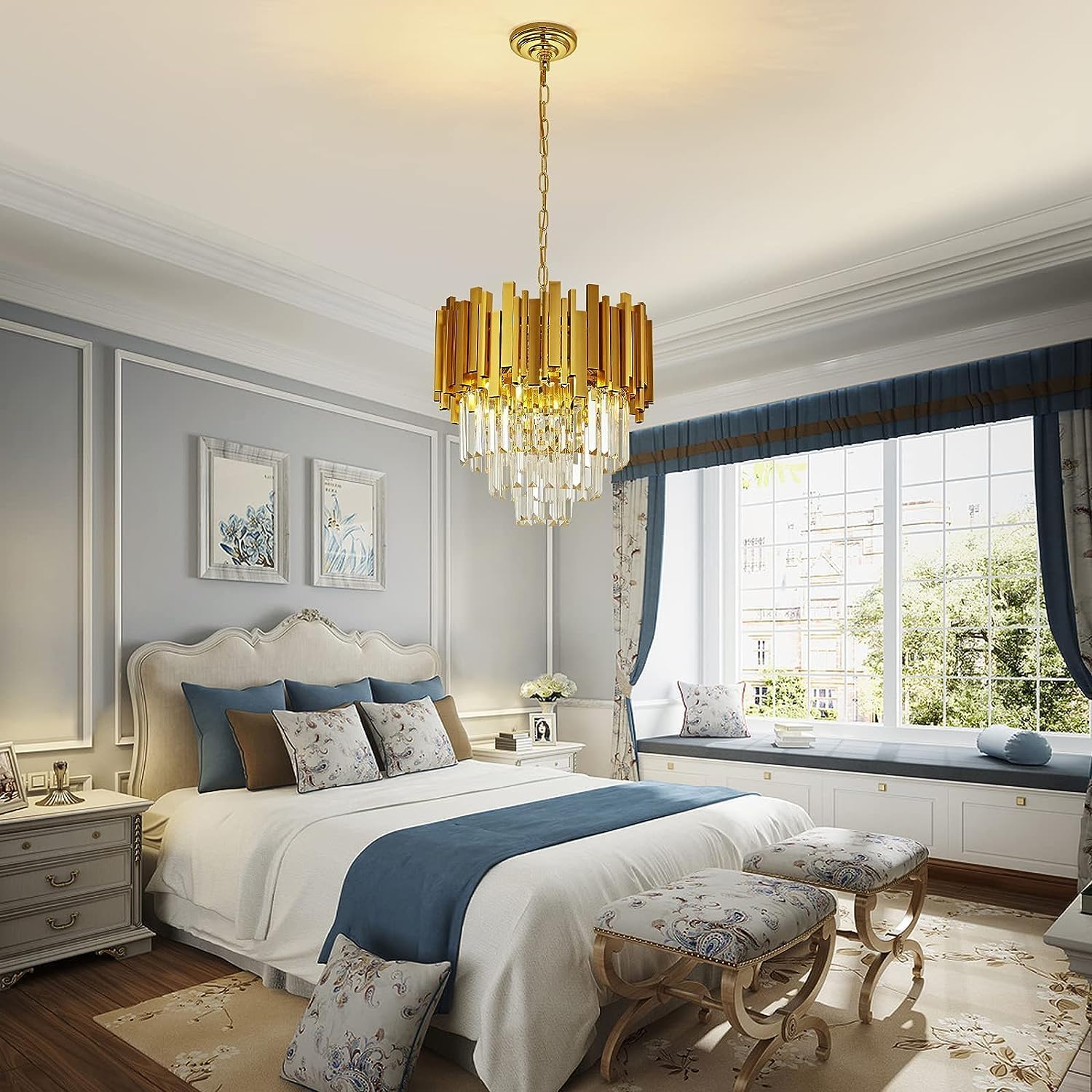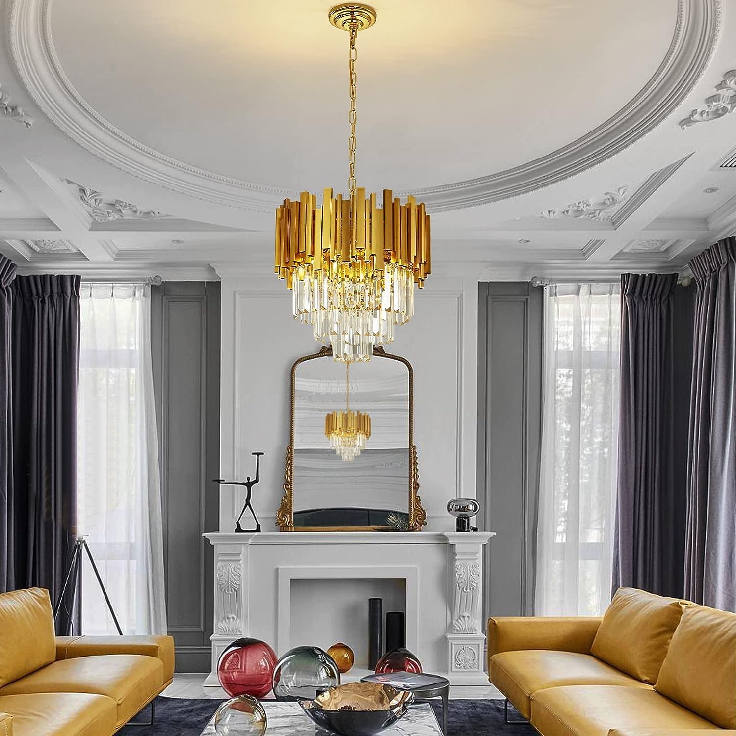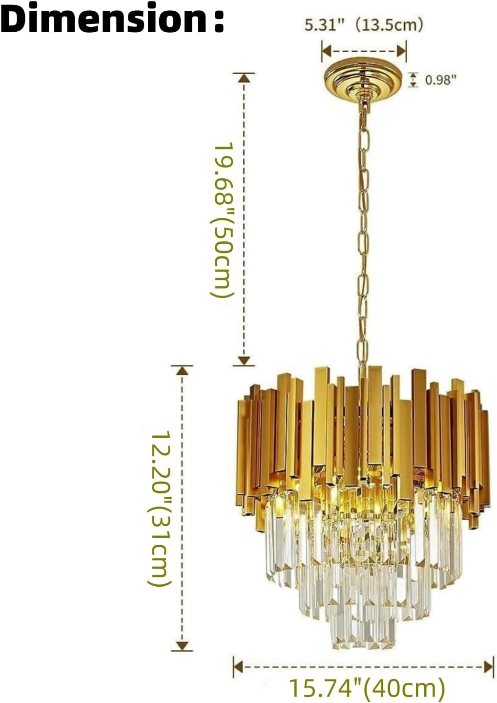- 【Luxurious Crystal Chandelier】Our modern crystal chandelier features a golden aluminum frame and clear K9 crystal strings that create an eye-catching piece of art. The crystals make this gold chandelier look gorgeous and elegant with perfect light transmission.