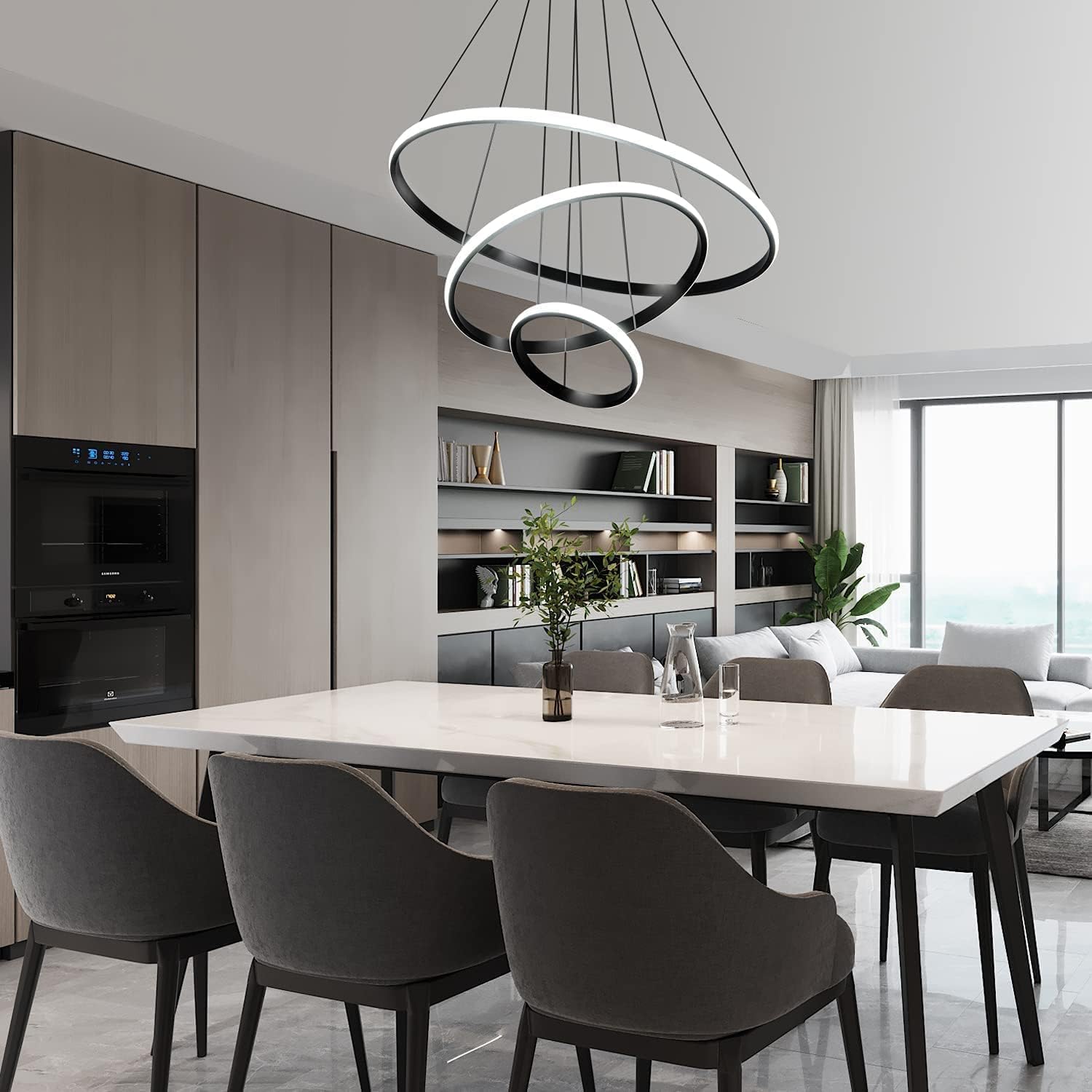 - ✨【3 Ring Chandeliers Lighting】The surface of this led chandeliers is brushed to make the ceiling lights more high-end, elegant and atmospheric. The modern led chandeliers made of high-quality aluminum metal + acrylic, high light transmittance. High-efficiency LED light source, energy-saving, and the fashionable product design conforms to modern aesthetics, creating a warm atmosphere to decorate your home.