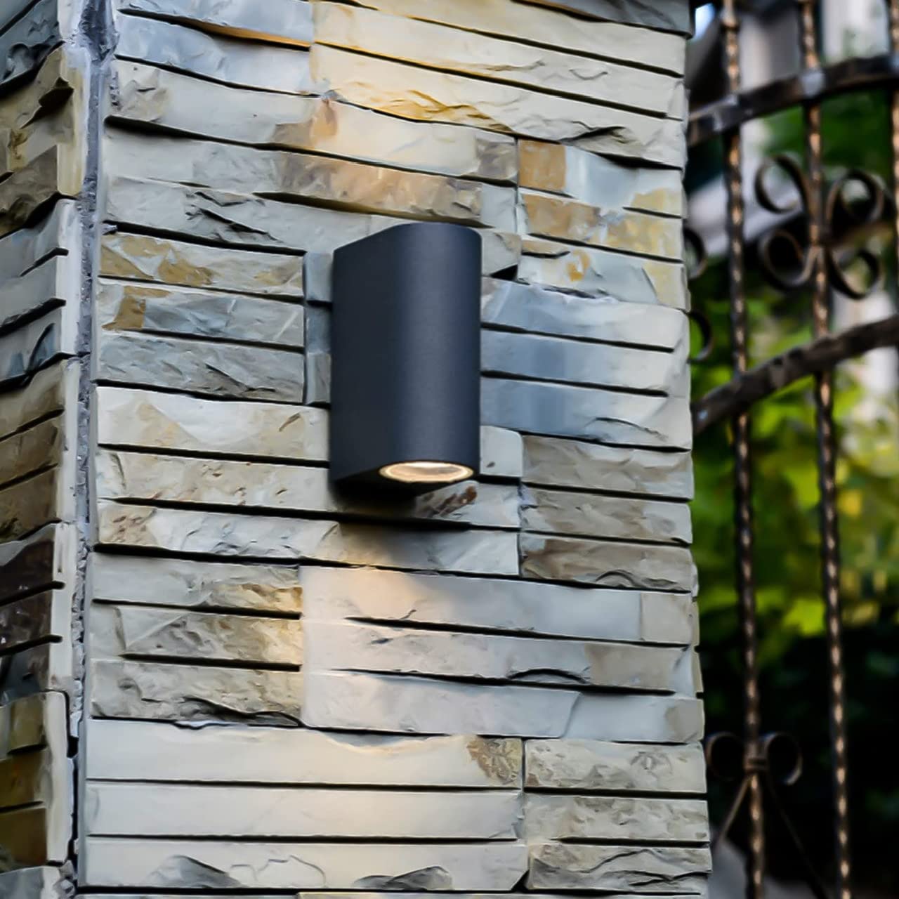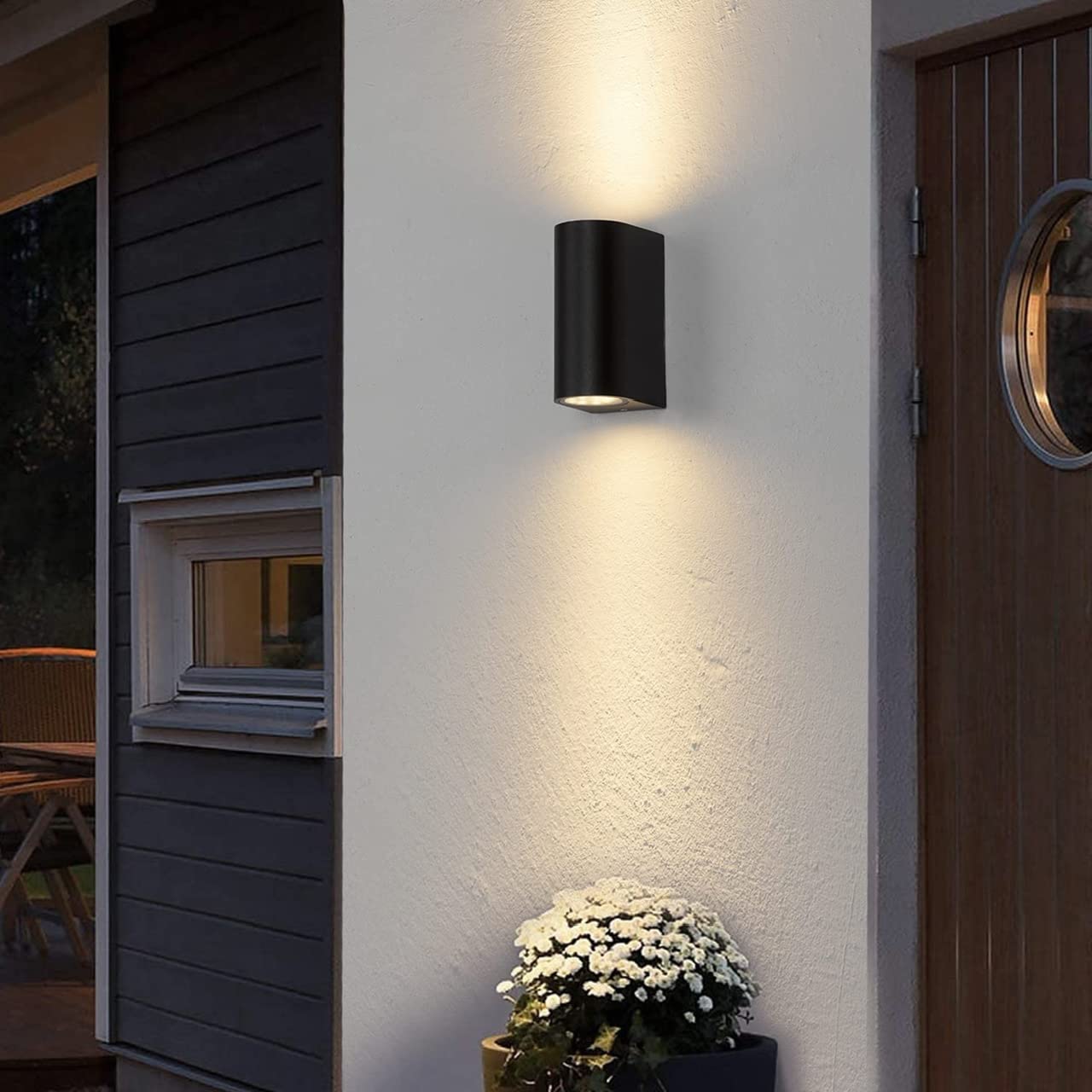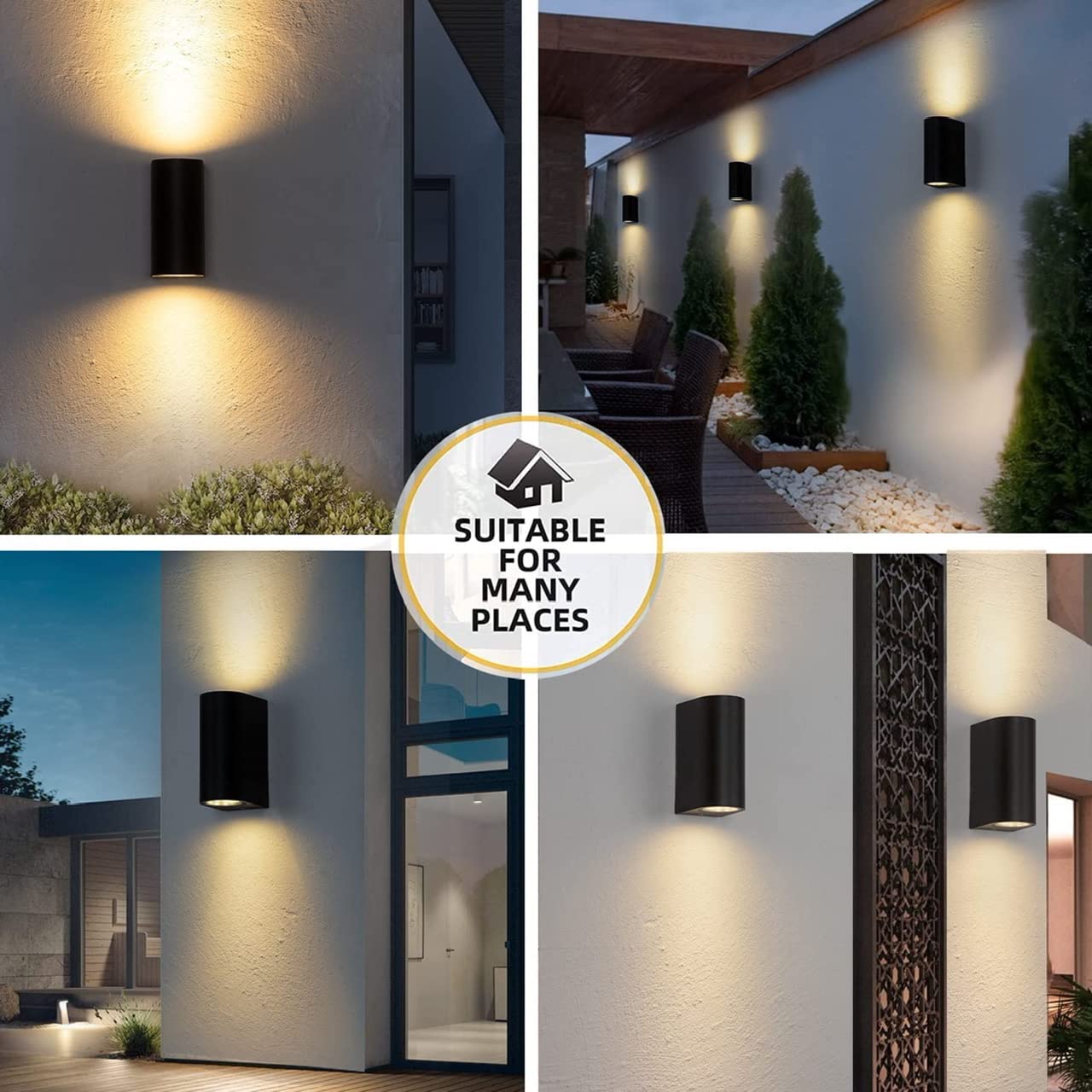 Modern Outdoor Updown Porch wall Light with changeable Gu10 lamps Aluminum body and Tempered Glass Cover Waterproof Wall Sconce (Black, Round Shape)