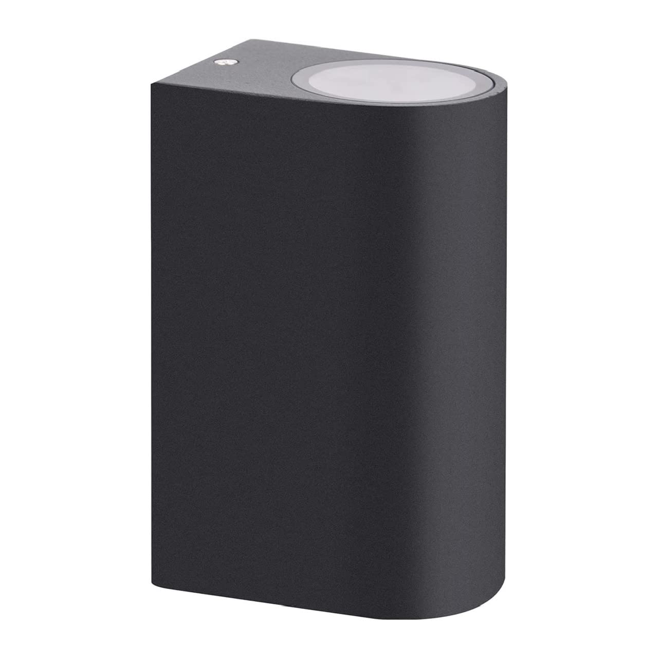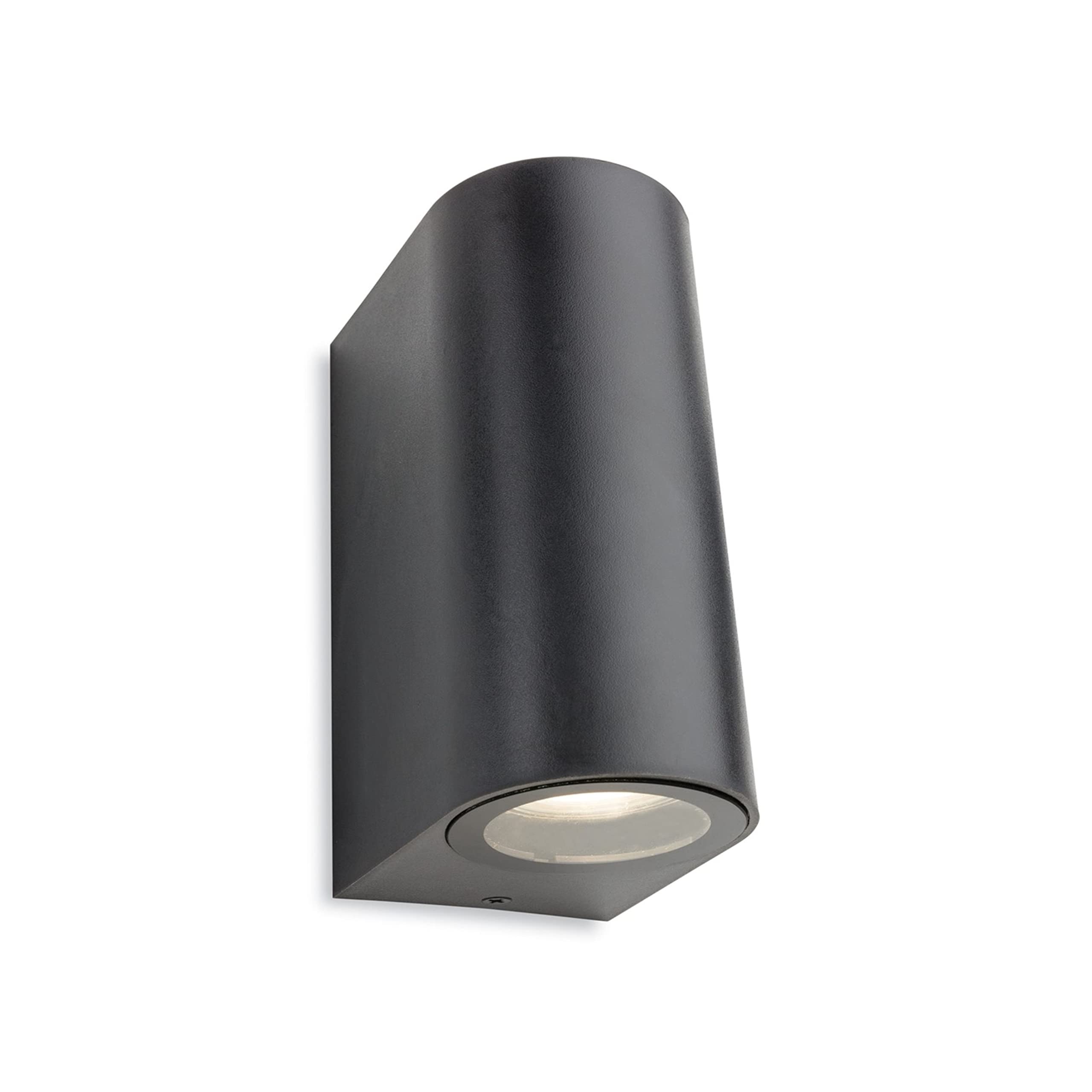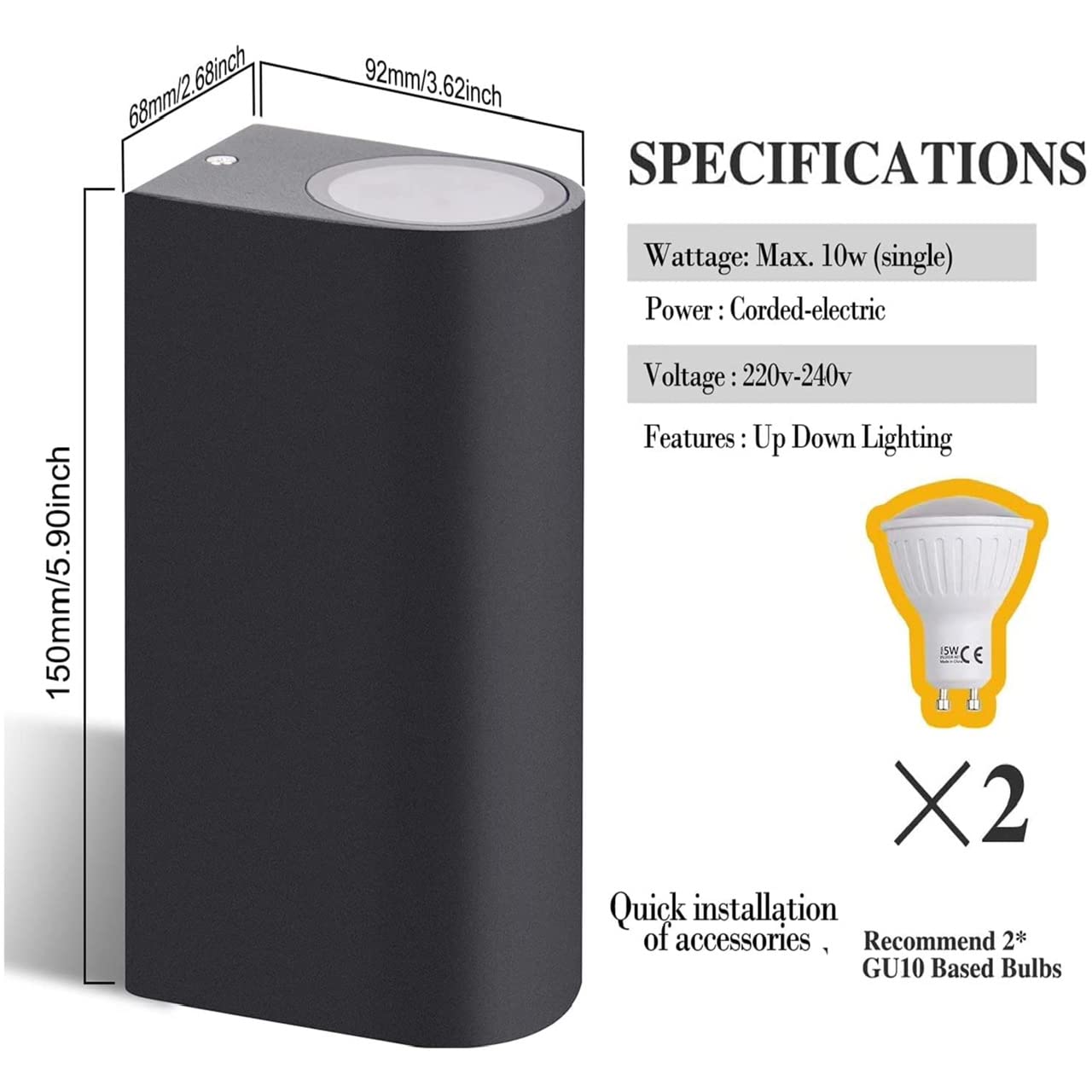 Modern Outdoor Updown Porch wall Light with changeable Gu10 lamps Aluminum body and Tempered Glass Cover Waterproof Wall Sconce (Black, Round Shape)