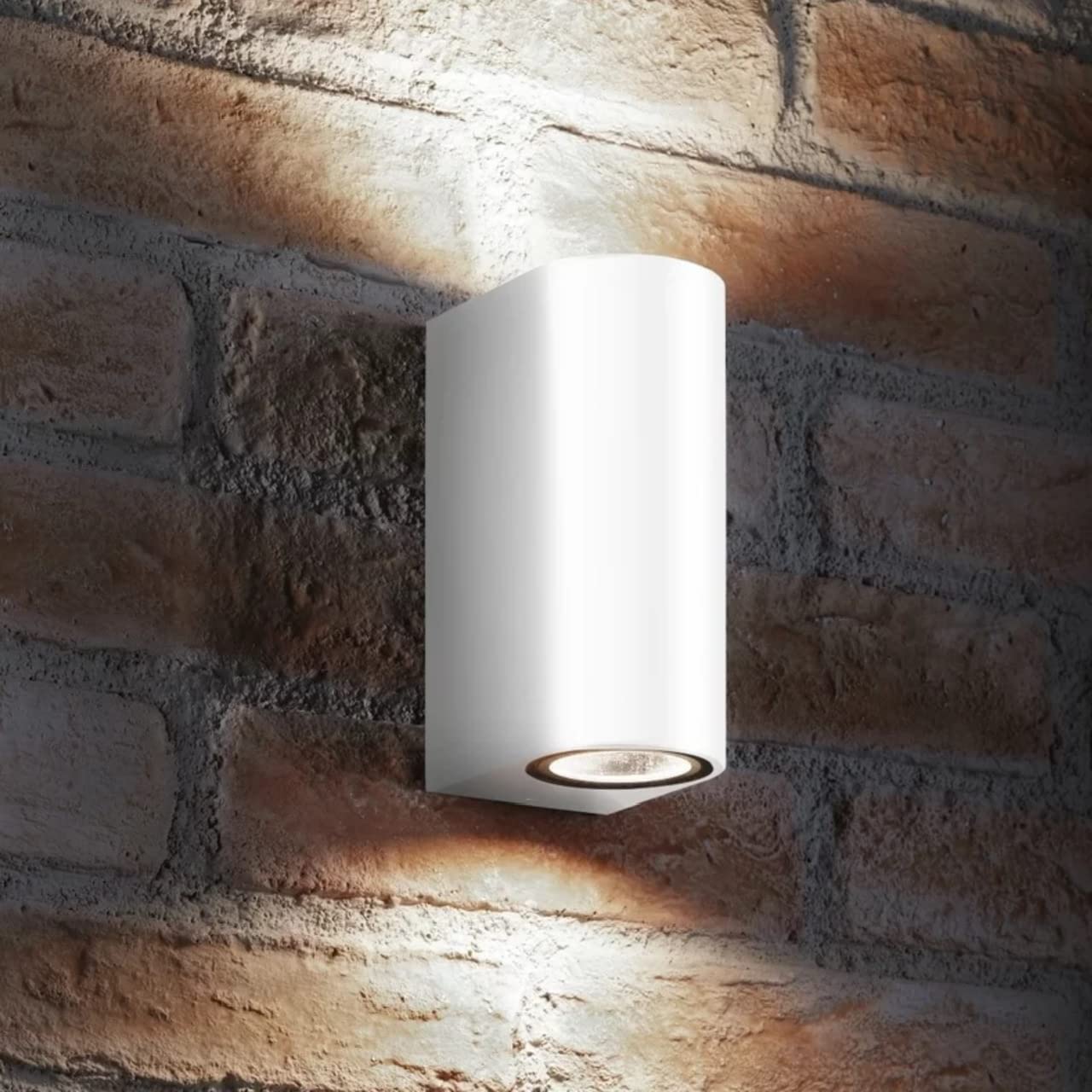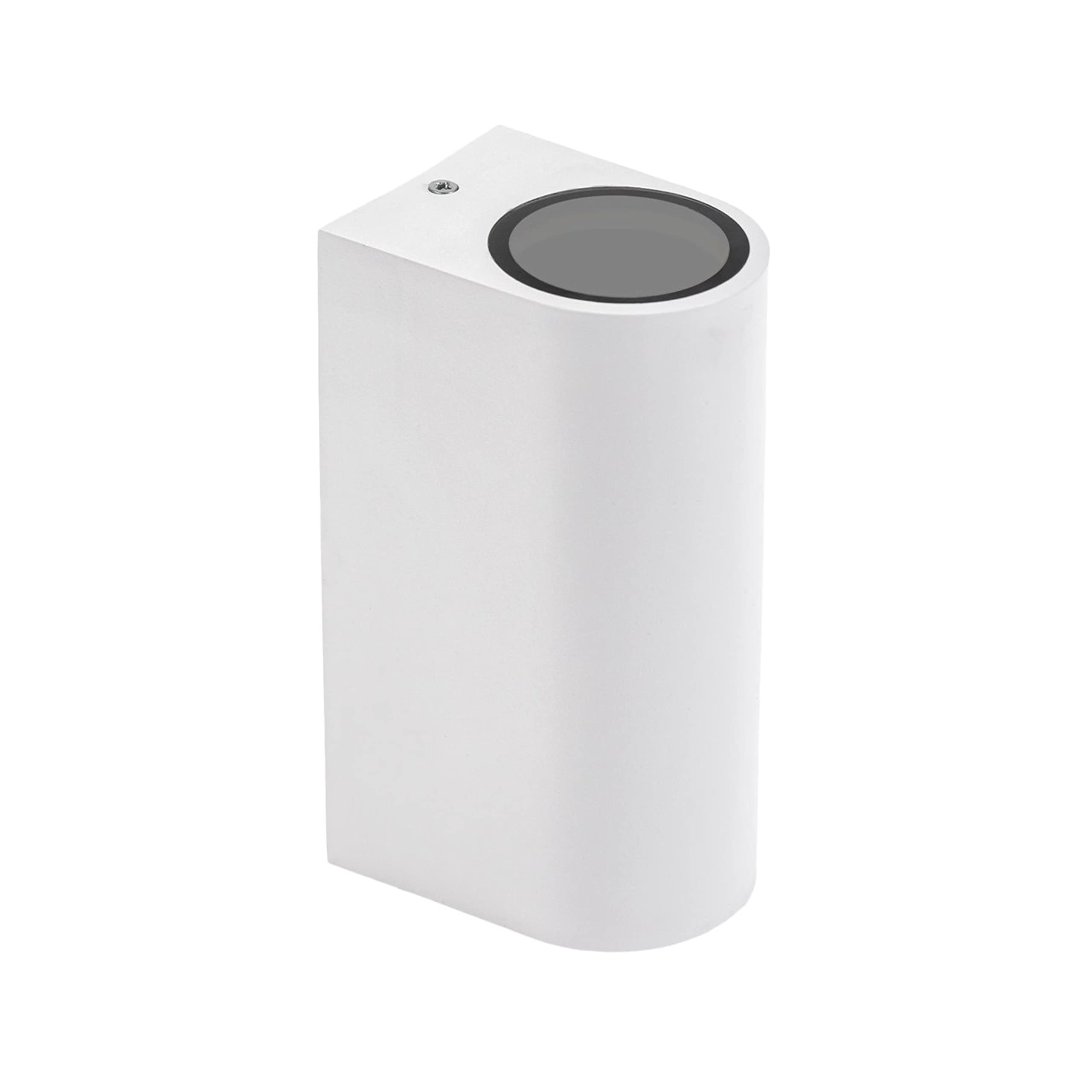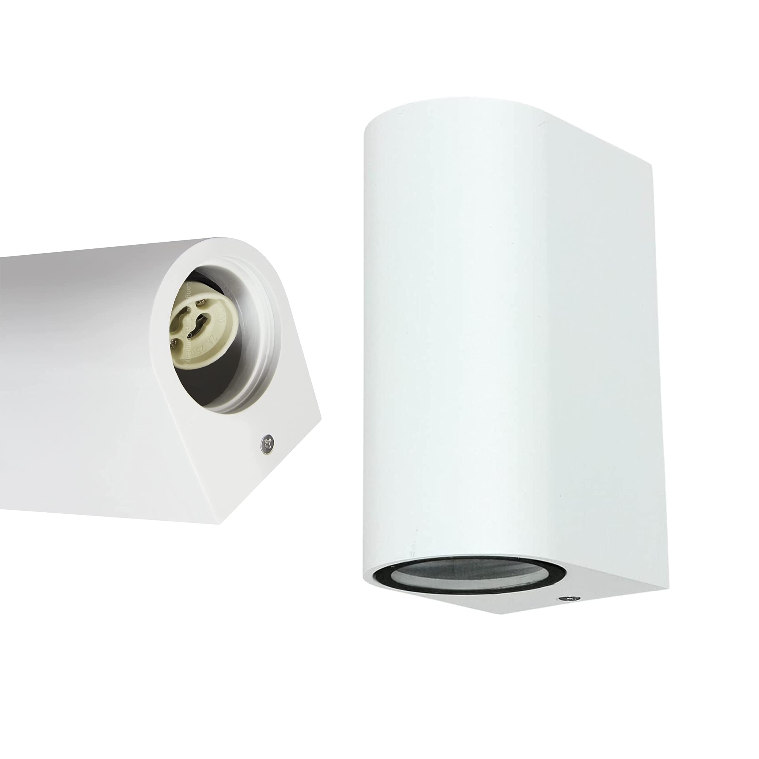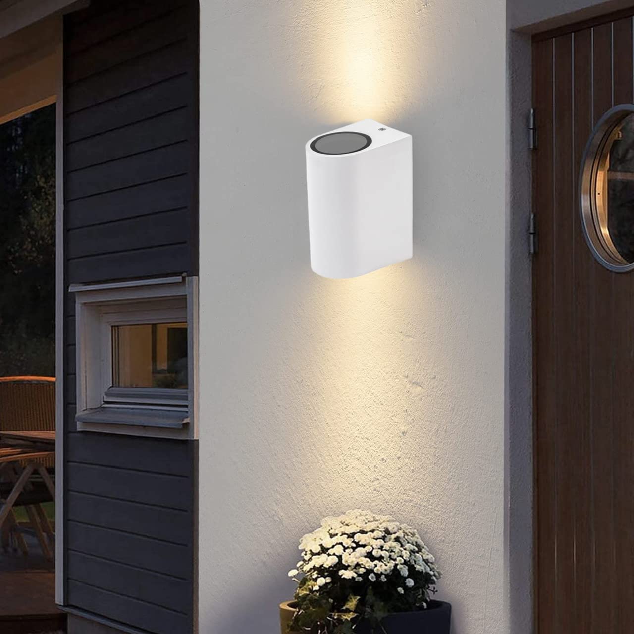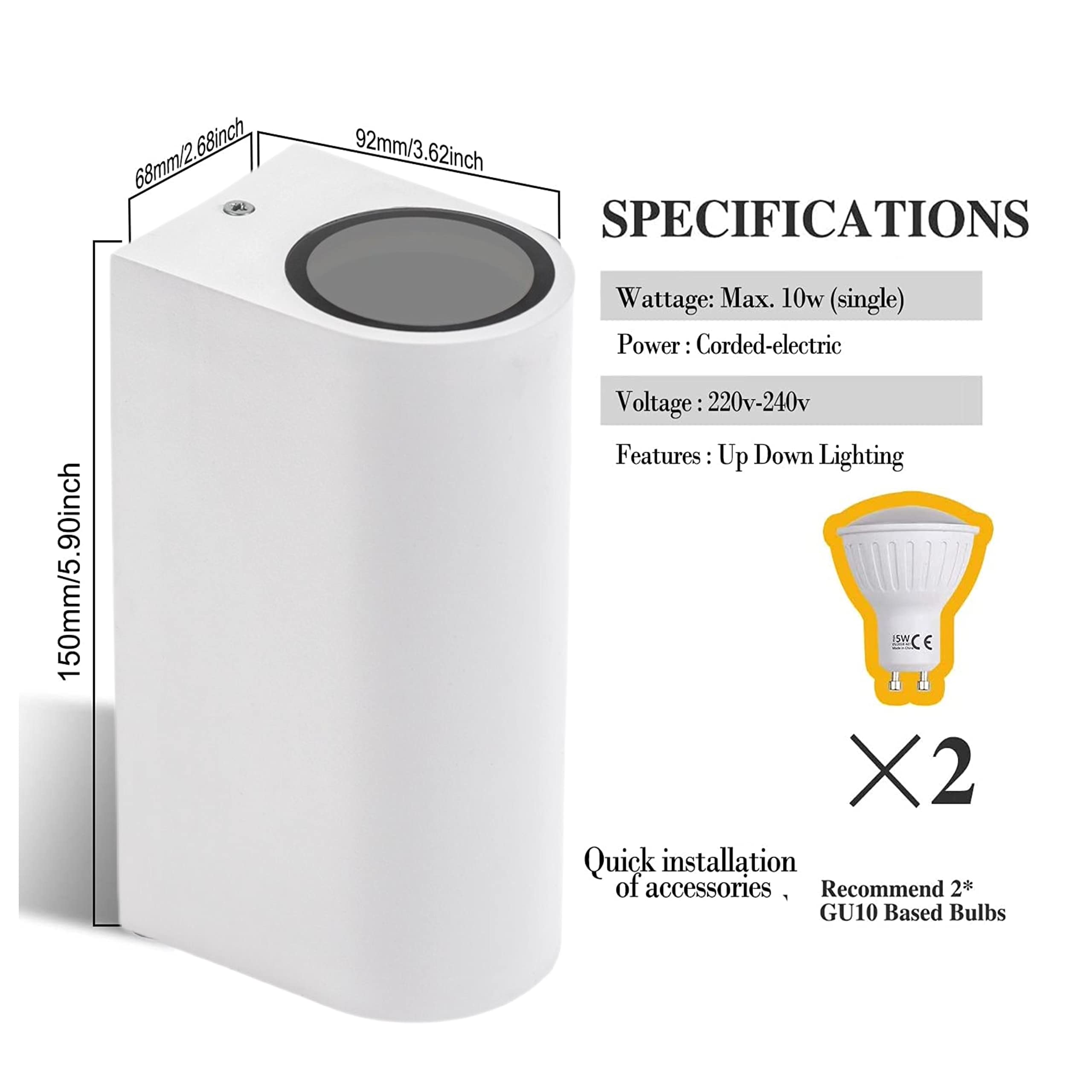 Modern Outdoor Updown Porch wall Light with changeable Gu10 lamps Aluminum body and Tempered Glass Cover Waterproof Wall Sconce (White, Round Shape)
