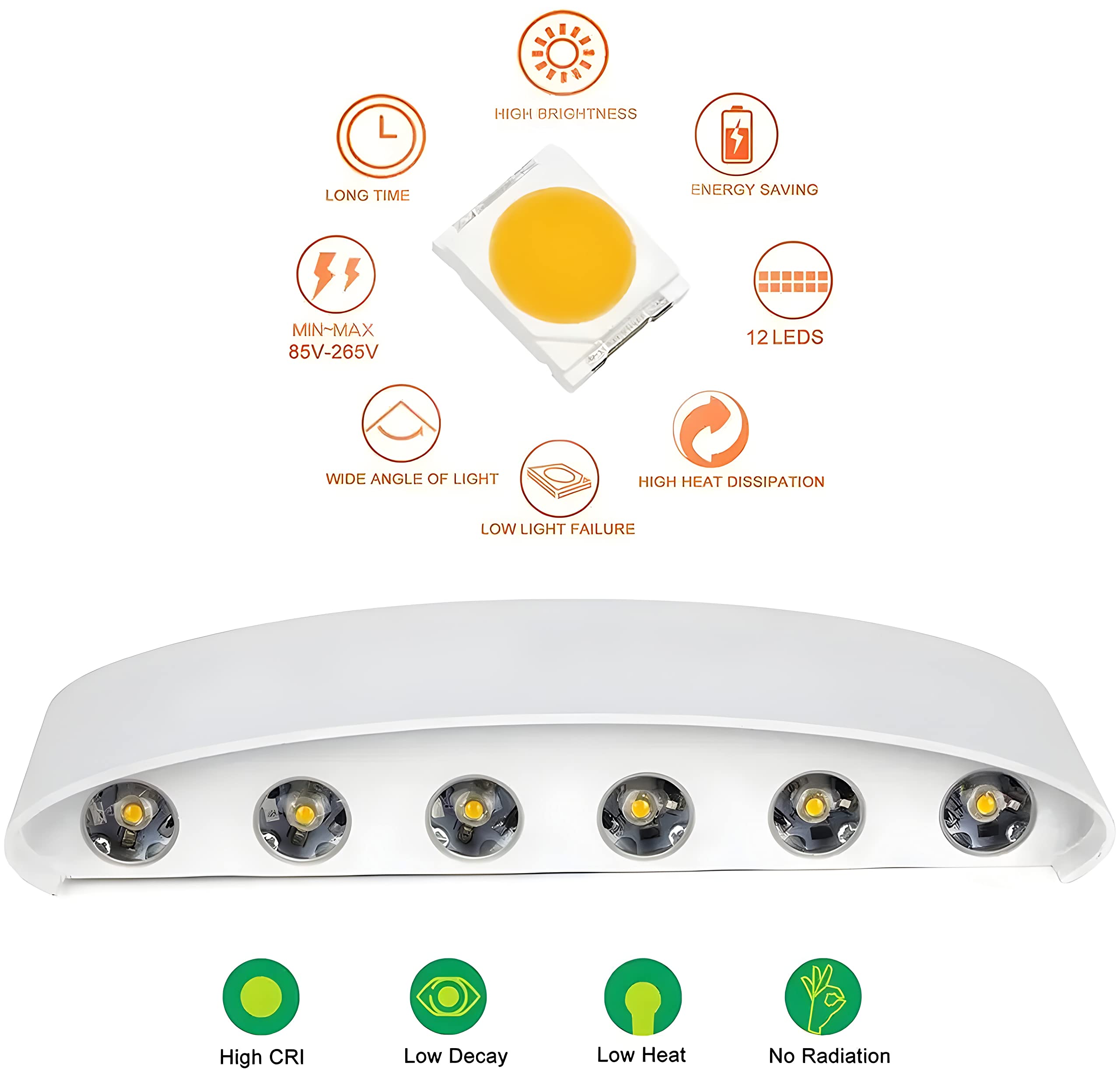 Modern Outdoor Wall Sconce Light 12 LED Room Wall Lights Up Down Light for Living Room Bedroom Corridor Warm light (White, 12 Led)