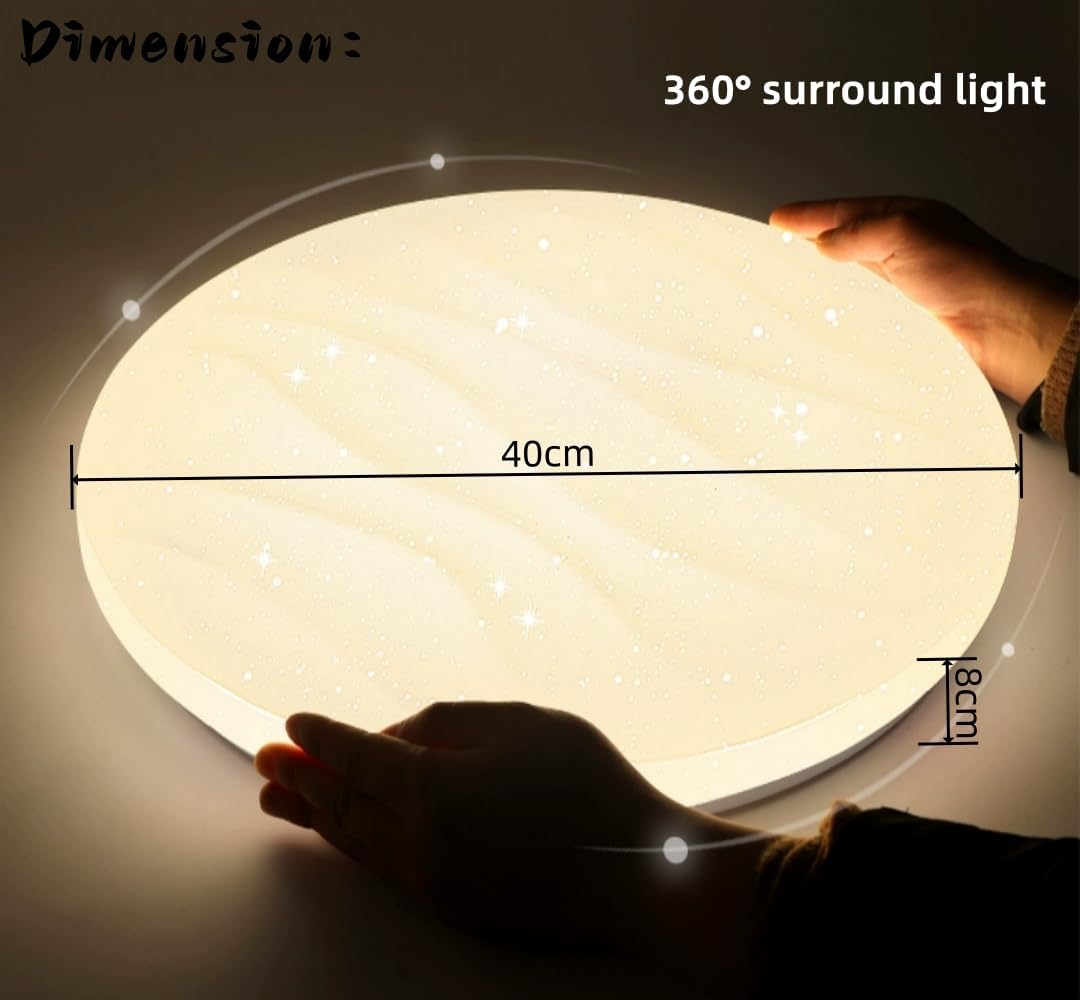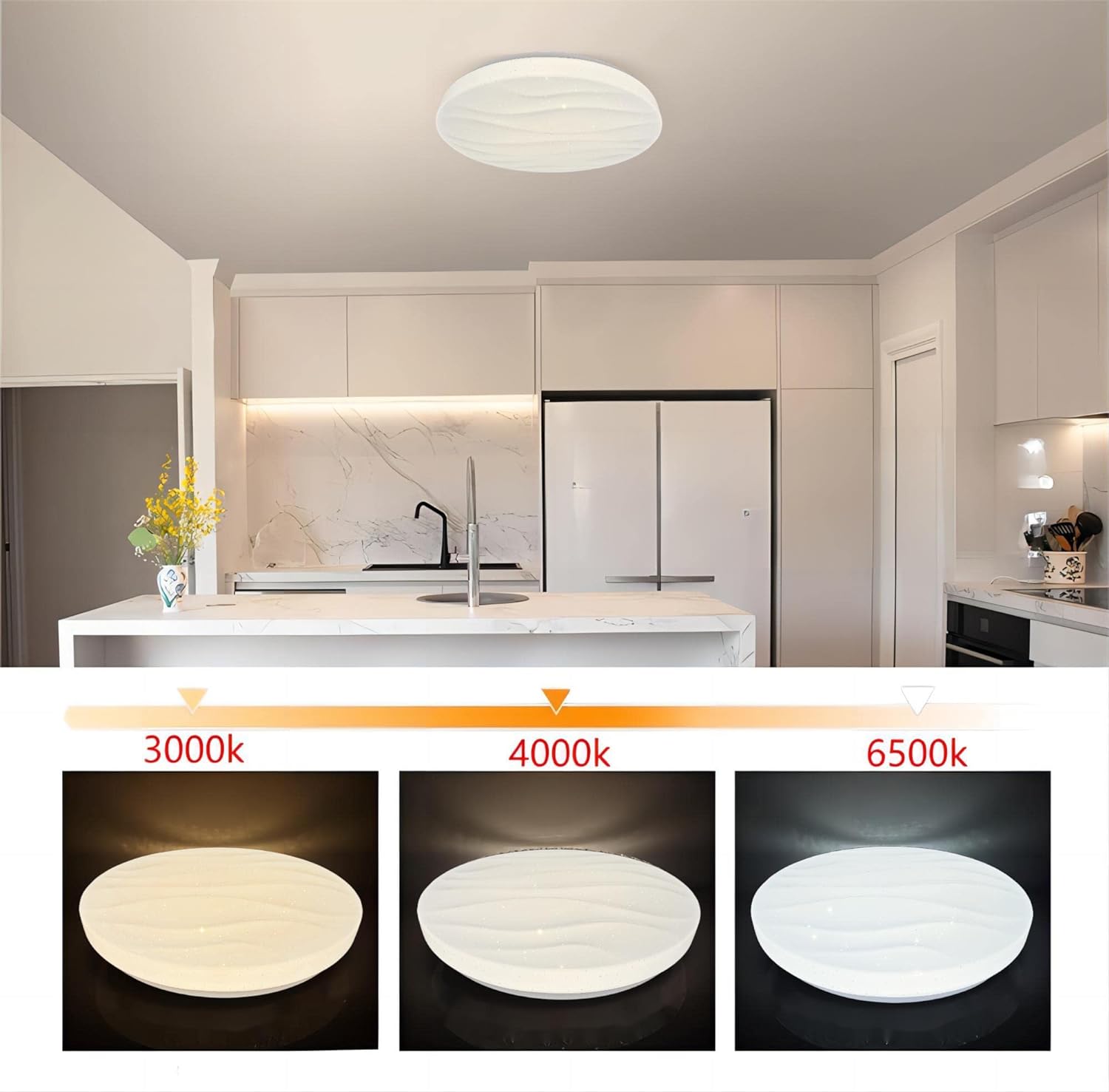 - 【☄ 3-COLOR AVALIABLE】This plastic flush mount ceiling light features a selectable color temperature which allows you to choose your preferred light color: warm white(3000k), netural white(4000k) and cool white (6500K) ,controlled by switch only.