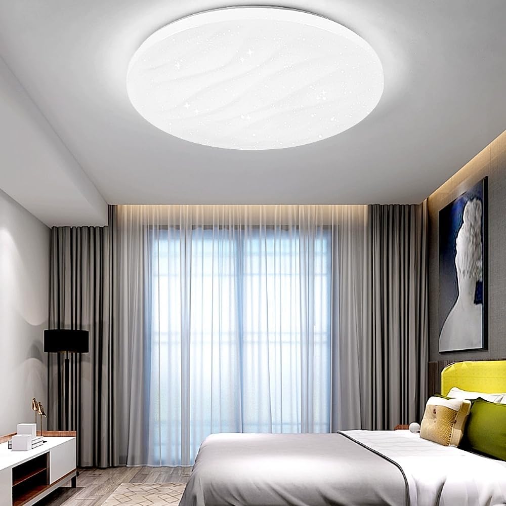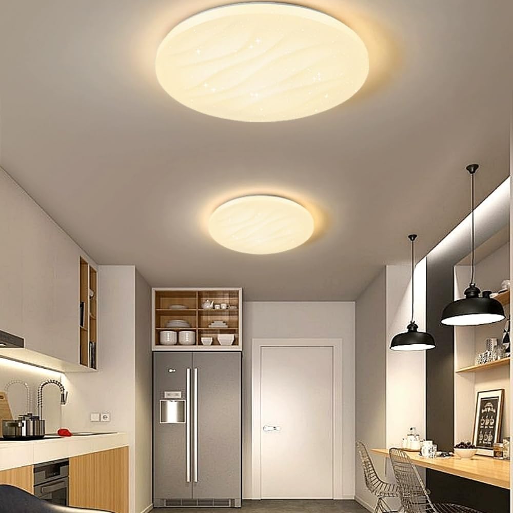 - 【☄NO FLICKER & EYE PROTECTION】LED Flush Mount Ceiling Light adopts the plastic white lampshade and qualified LED chips, it lights uniformly without flicker, protecting your eyes from harsh and glaring lights.