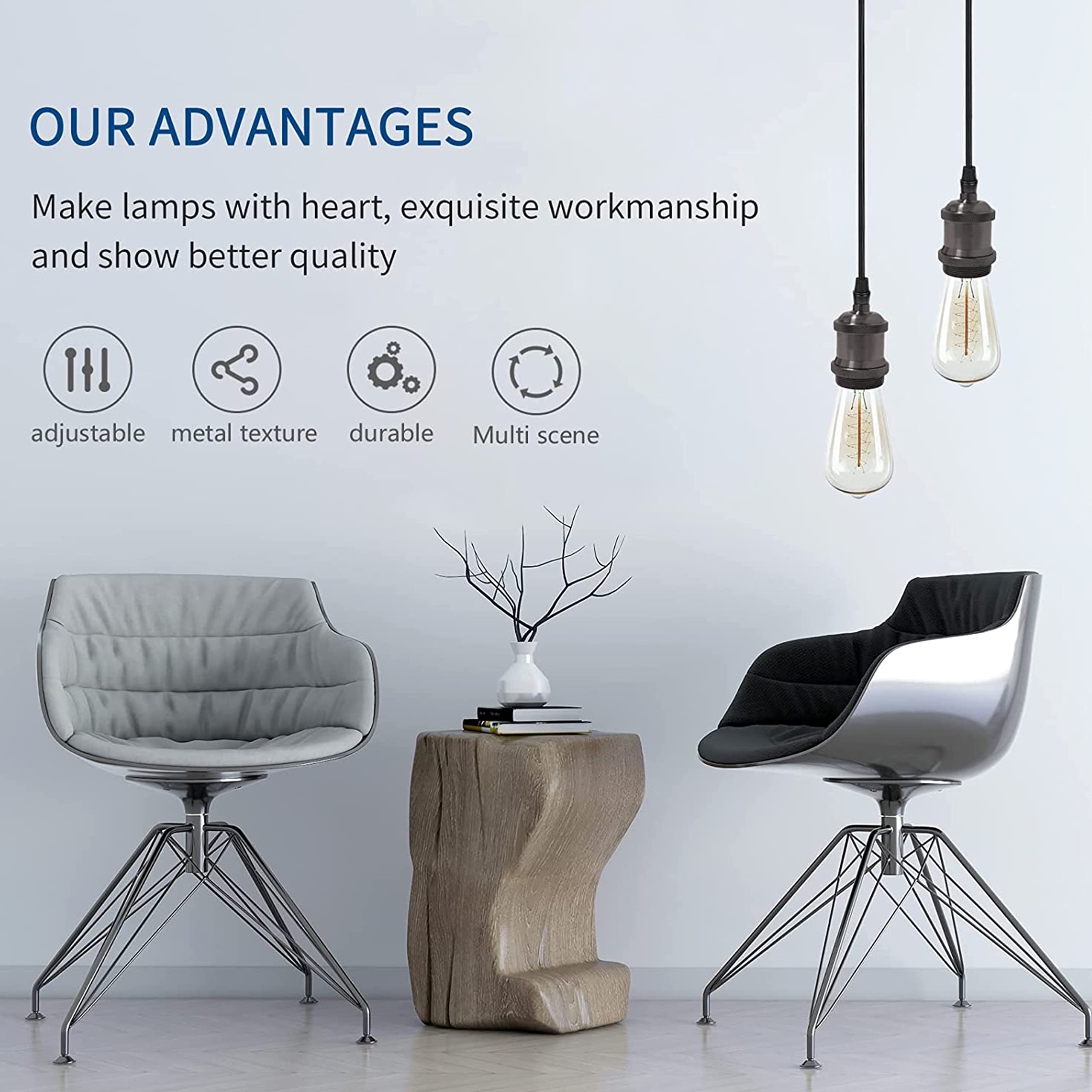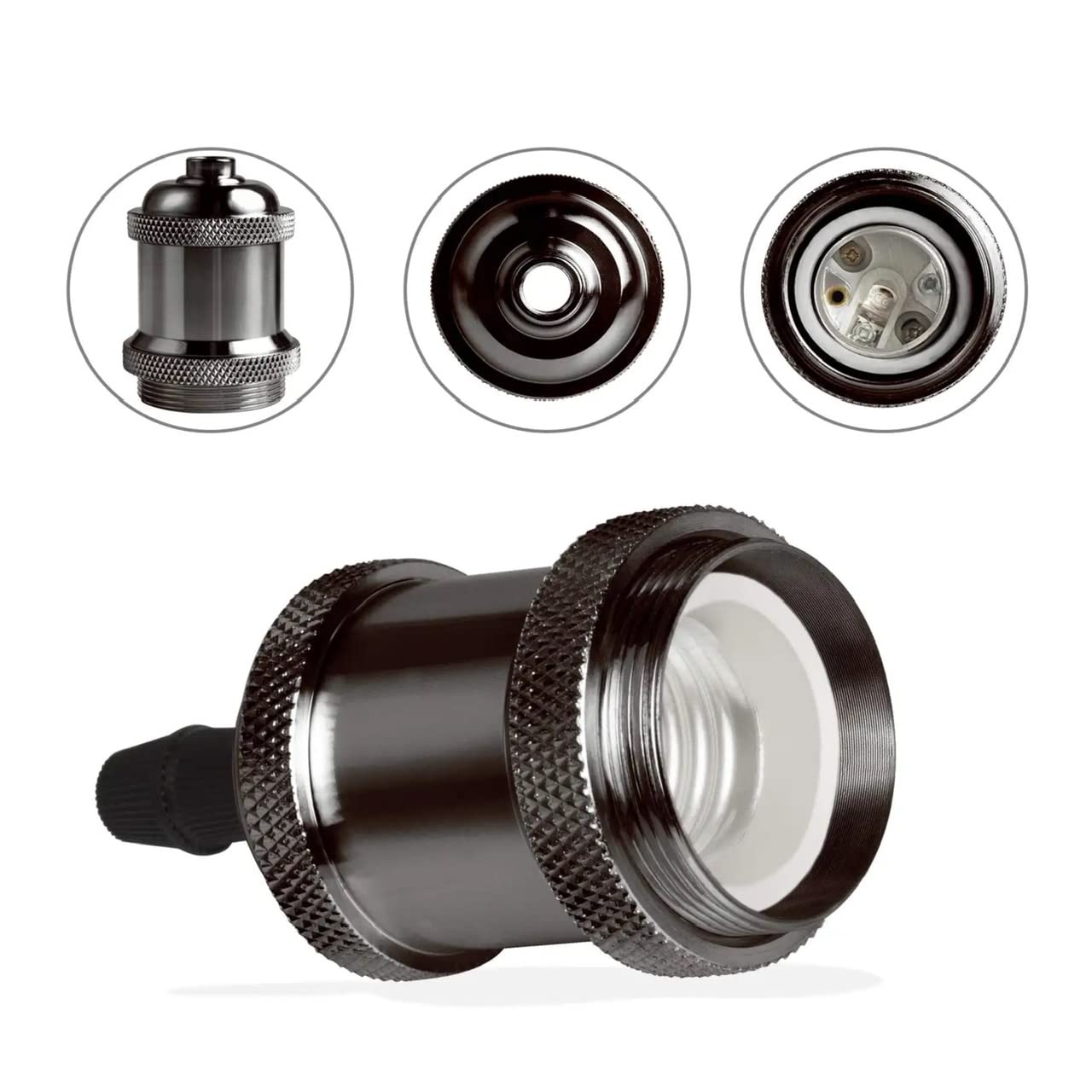 Nextlife E27 Pendant Cord Set ceiling rose (E27/edison fitting), Aluminium Light Pendant E27 Bulbs Fitting Set with Braided Fabric Cable (Black Chrome)