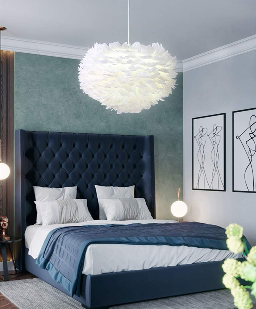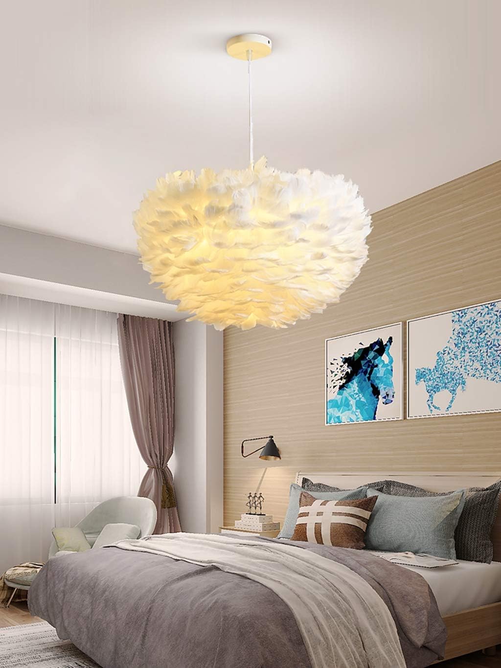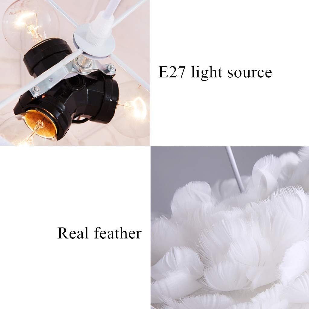 Nordic Chandelier Pendant E27 Feather Coating Suspension Hardware Hanging Lamp, White, 60cm