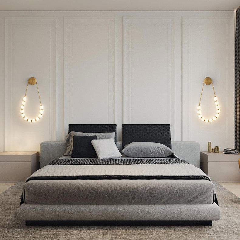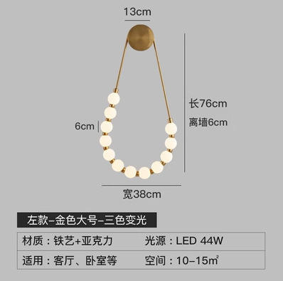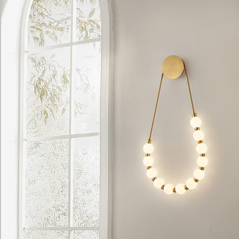Nordic modern simple creative designer pearl necklace bedside wall lamp living room background wall lamp Gold