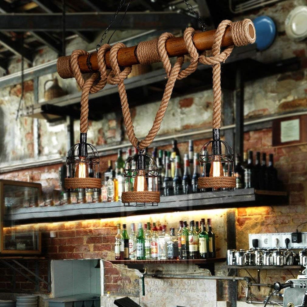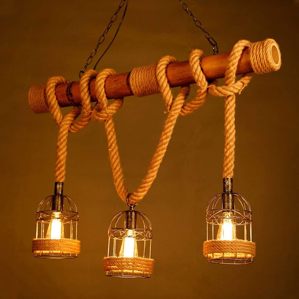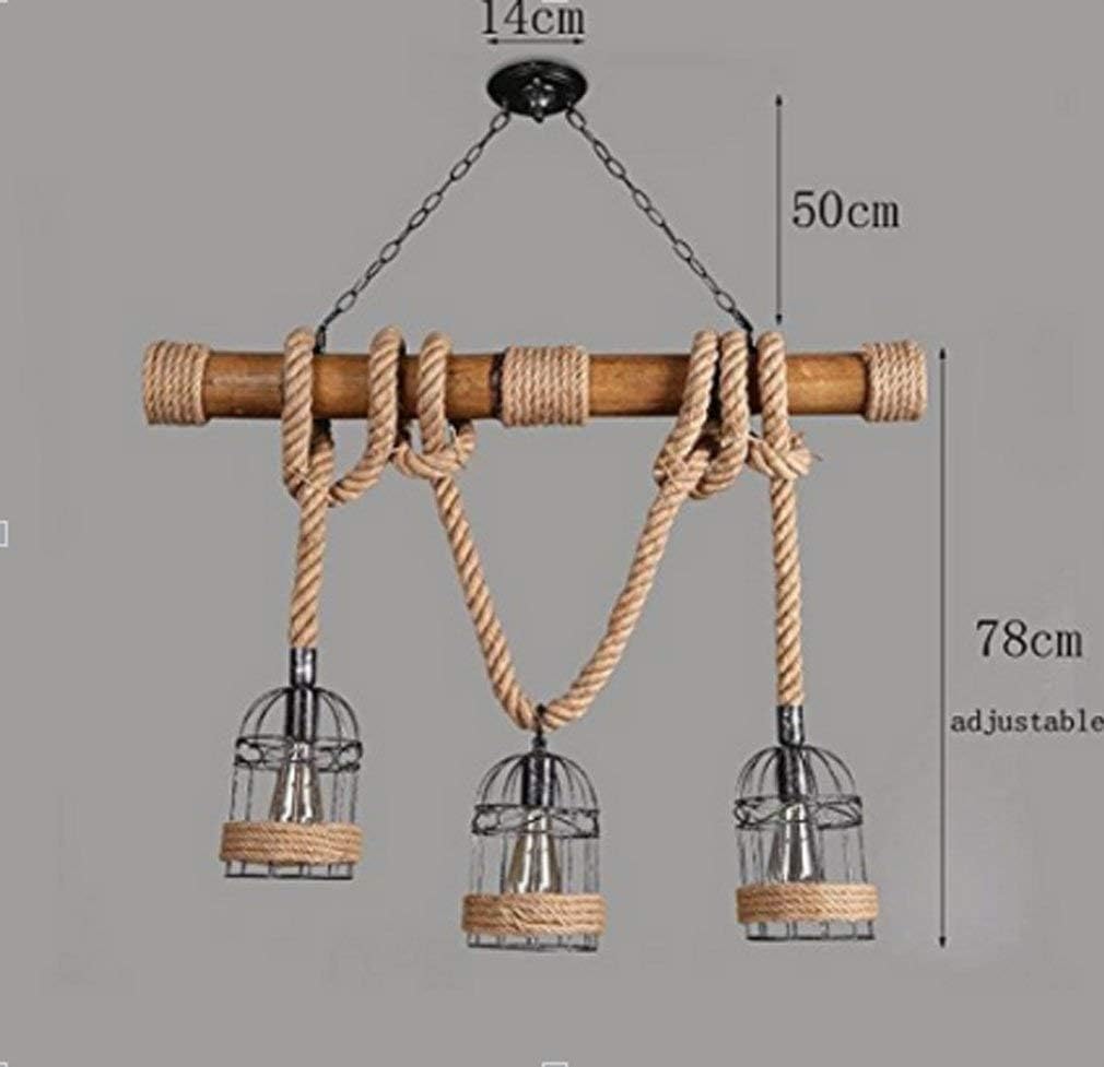 Retro Edison Chandelier, 3 Lights Chandelier Personality Brown E27 Light Socket Hemp Rope Bamboo Light Antique Cage Adjustable Height L70cm