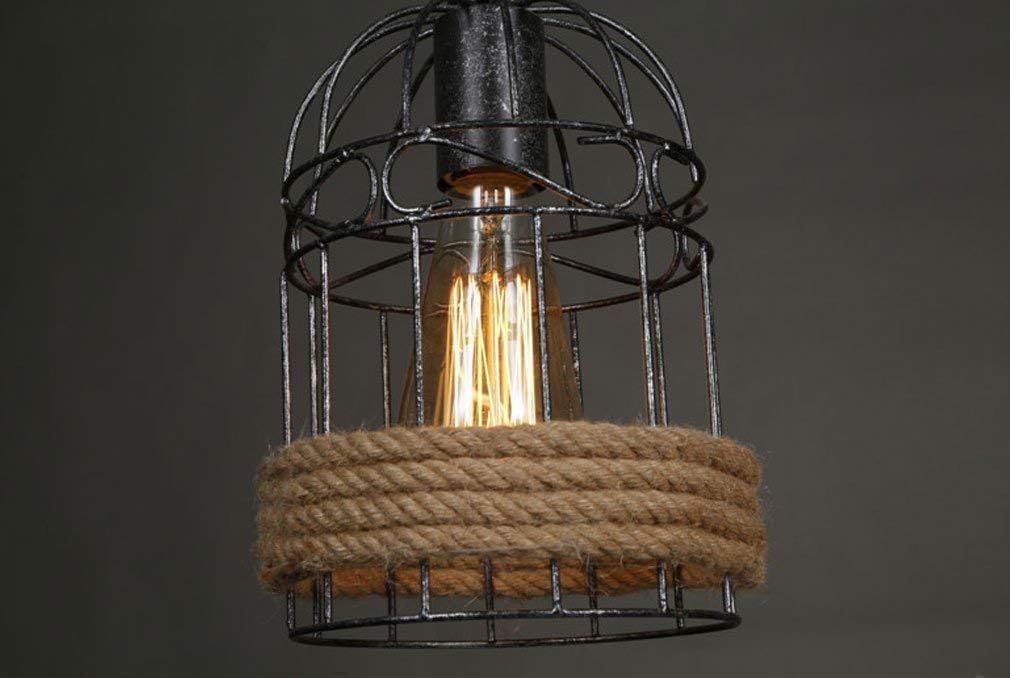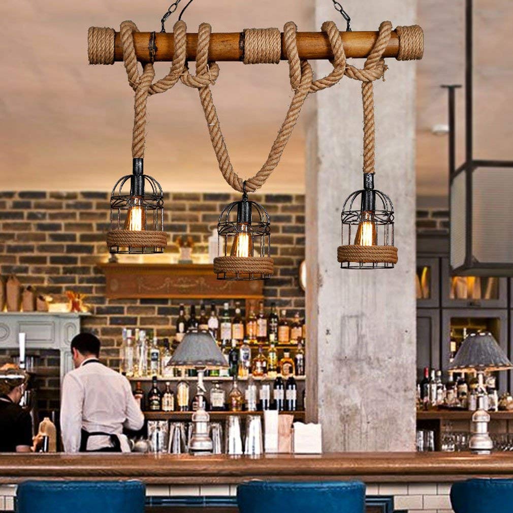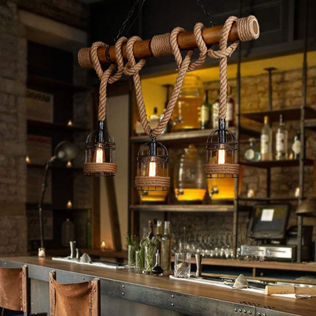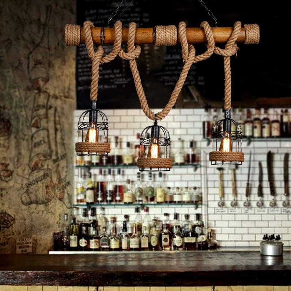 Retro Edison Chandelier, 3 Lights Chandelier Personality Brown E27 Light Socket Hemp Rope Bamboo Light Antique Cage Adjustable Height L70cm