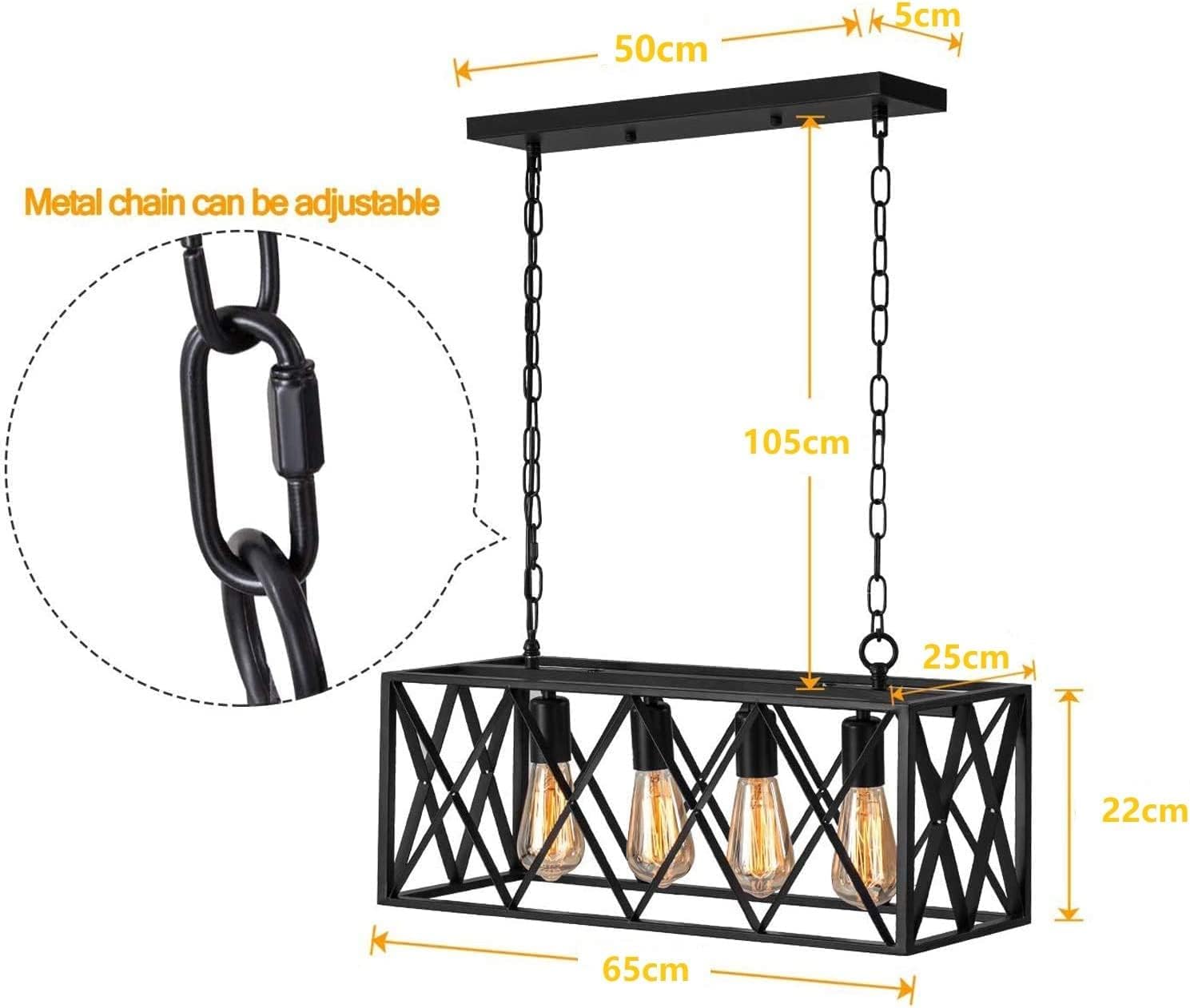 Features: Dimension: Features: Dimension: Canopy is 50cm*5cm. The lamp body features 65cm"(L)*25cm"(W)*22cm"(H). It will fit well within medium and large space. Industry Natural Design: Simple but chic. Its Chic look will cheer up your room with a variety of styles especially when adding Edison bulbs and will totally update the look of your room.