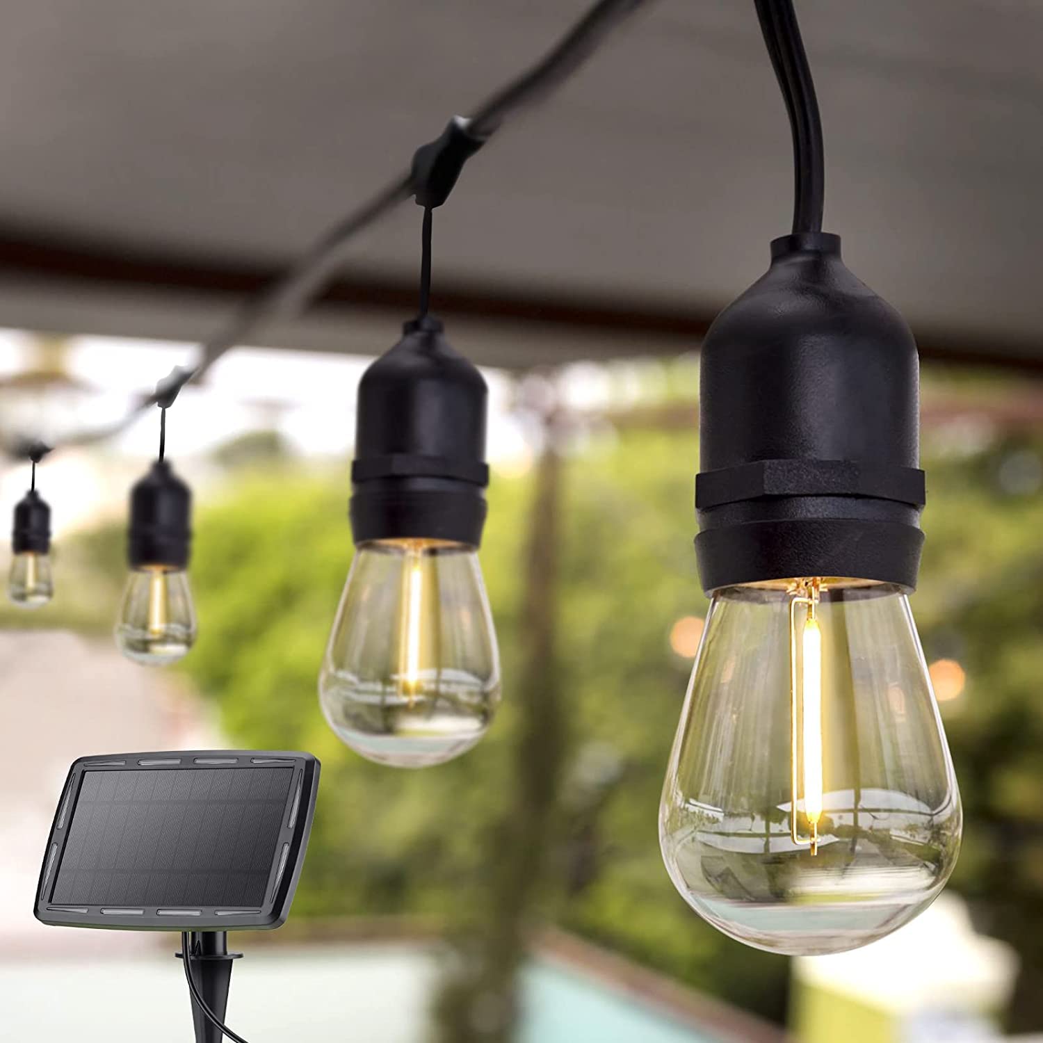 - Shatterproof and Waterproof: 10PCS 1W S14 LED plastic bulbs included, this solar edison string lights outdoor can be used in tough weather like high temperature, rainy, windy or snowy day. Upgraded LED bar with built in semiconductor chip and unique welding will totally improve its lifespan and stability, reducing up to 80% energy wasting.