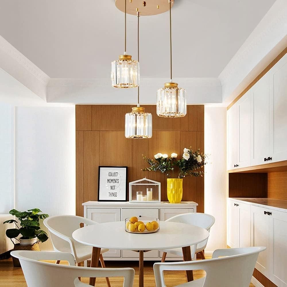 - Modern style suitable for any space: Nordic and simple chandelier design, cylindrical crystal lampshade, three-head island lighting fixtures can complement the decoration of your room and add more personality to your home decoration.