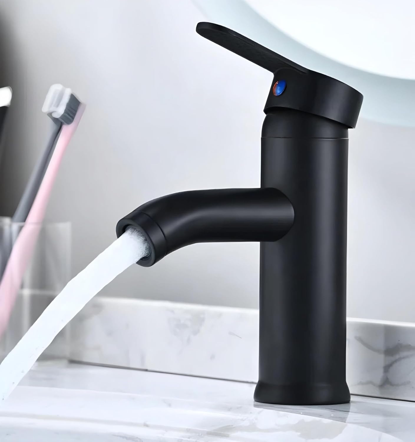 This Stainless Steel Sink Faucet has a single lever for easy temperature control and is designed for hot and cold water. Its leak-proof design ensures no wasted water, saving you money and reducing your environmental impact. The sleek black finish adds a touch of modern style to any kitchen or bathroom.