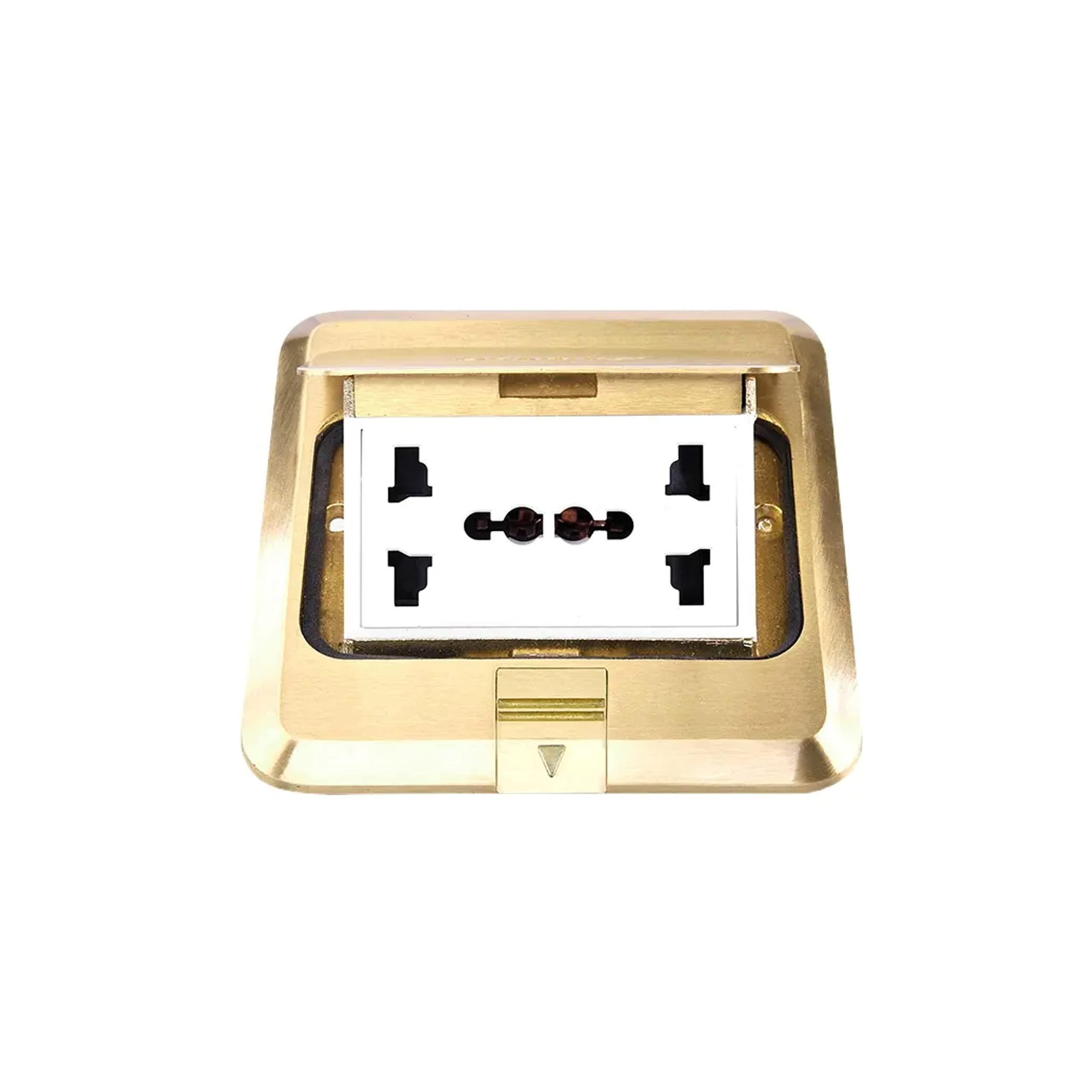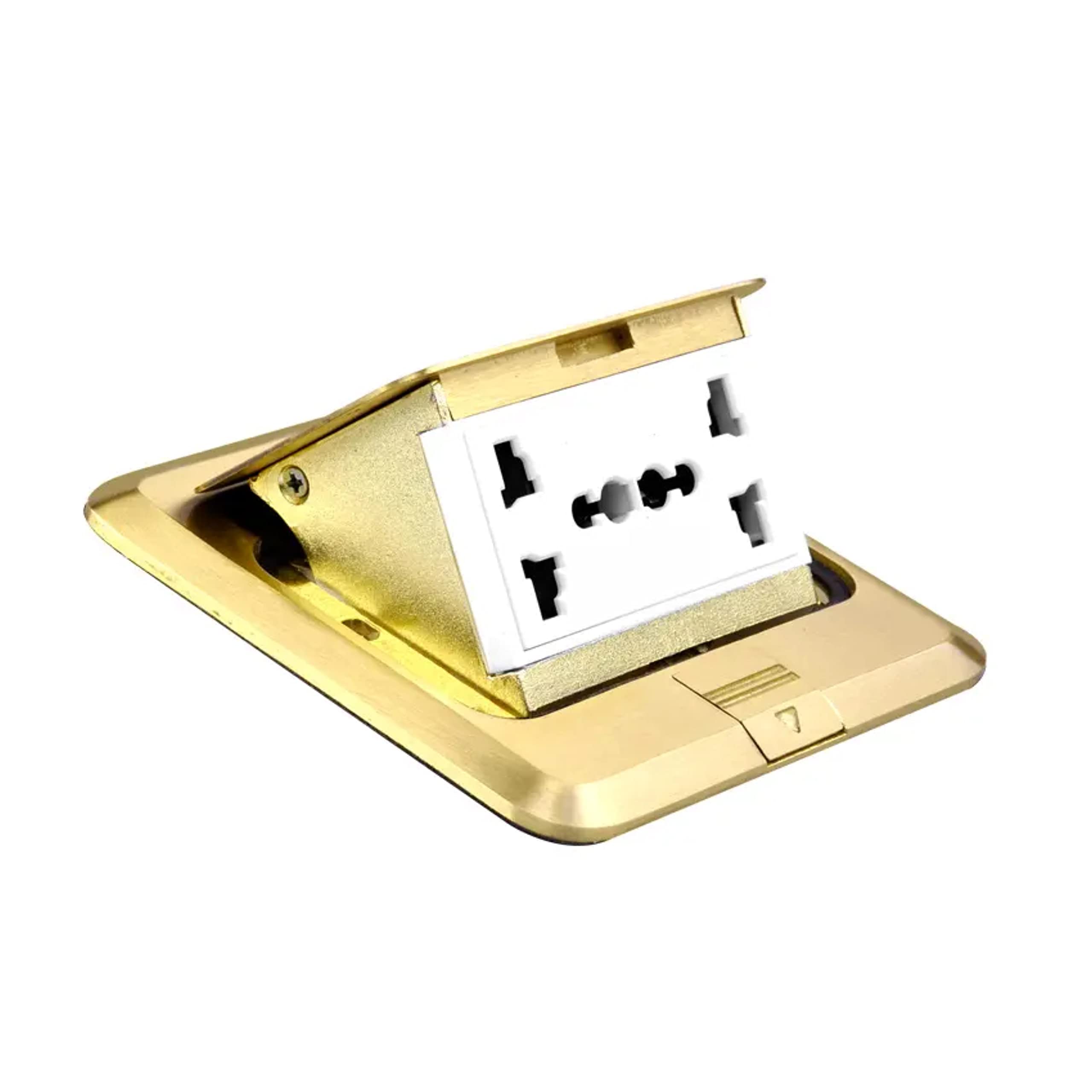 Aluminum Body 6 Hole Floor Socket, 13A AC 250V Floor Socket,Table socket for Electrical Outlet for Engineer Factory Home and Office (Gold)