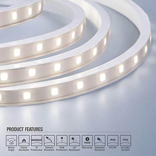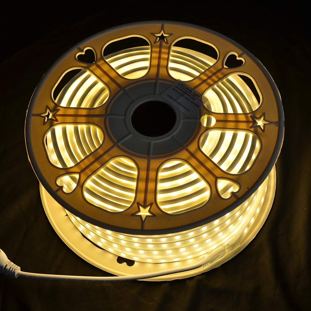 This 50M LED flexible strip light offers a warm white color (3000k) and an IP65 rating. With a low power consumption of 7W/M, it is energy-efficient and can be used both indoors and outdoors. Perfect for creating a cozy and inviting atmosphere in any space.