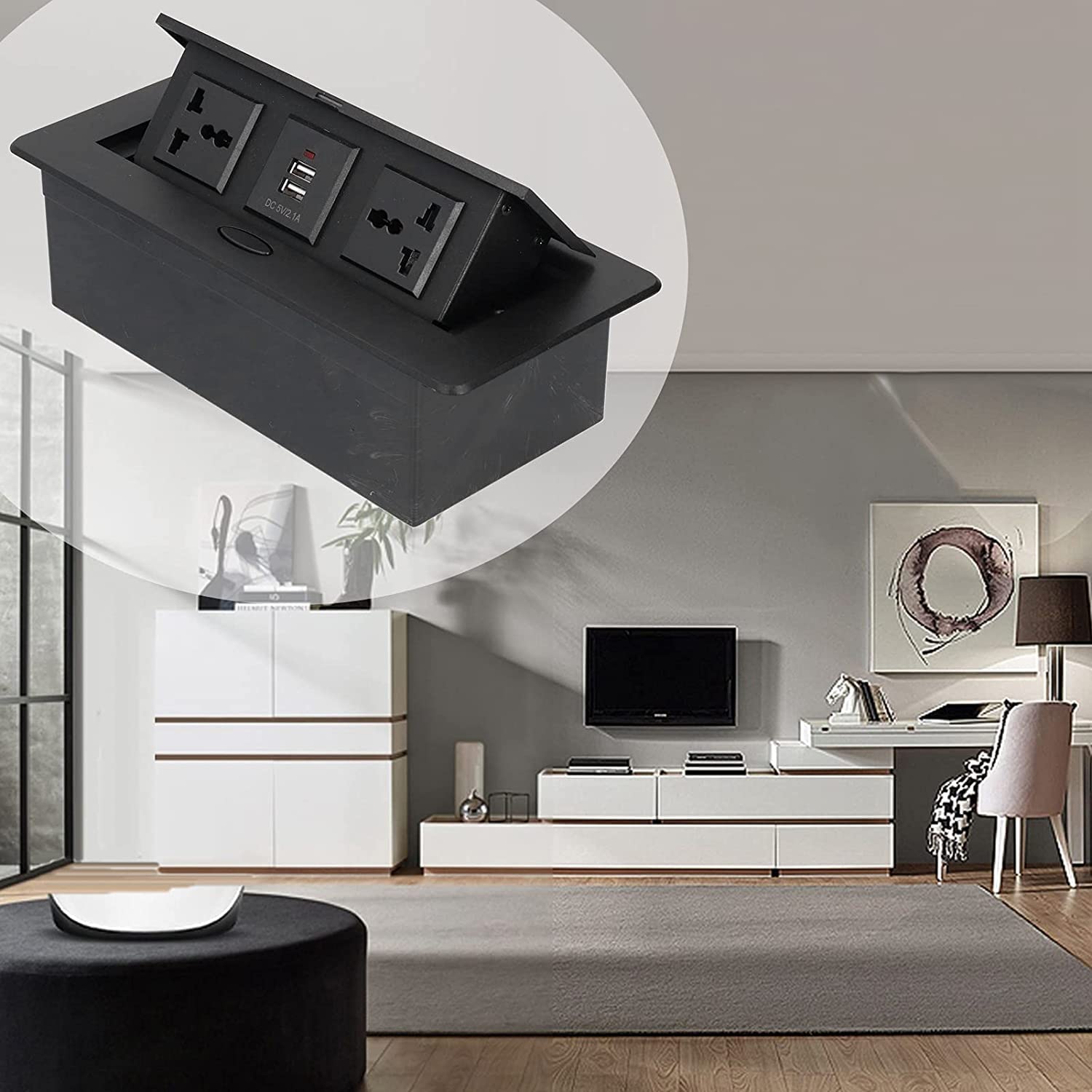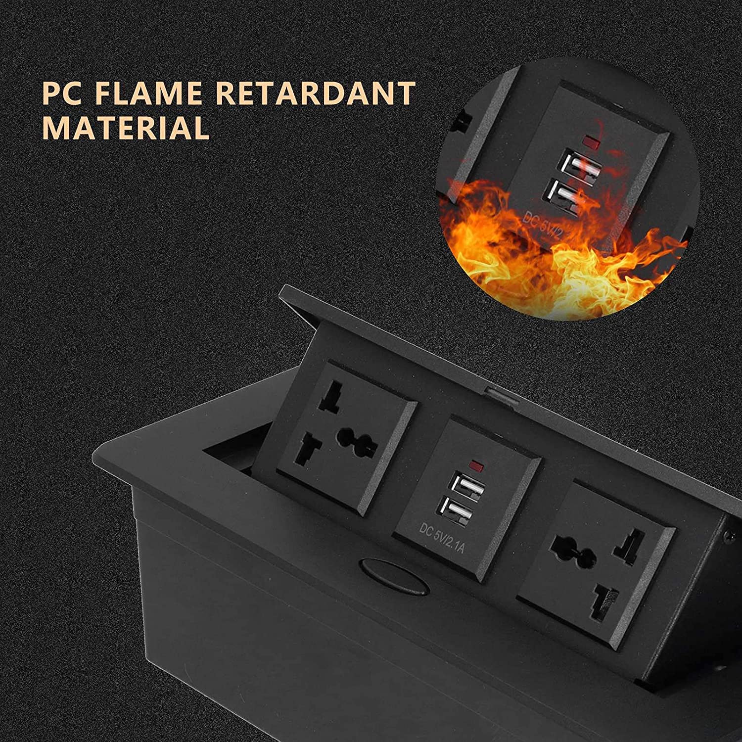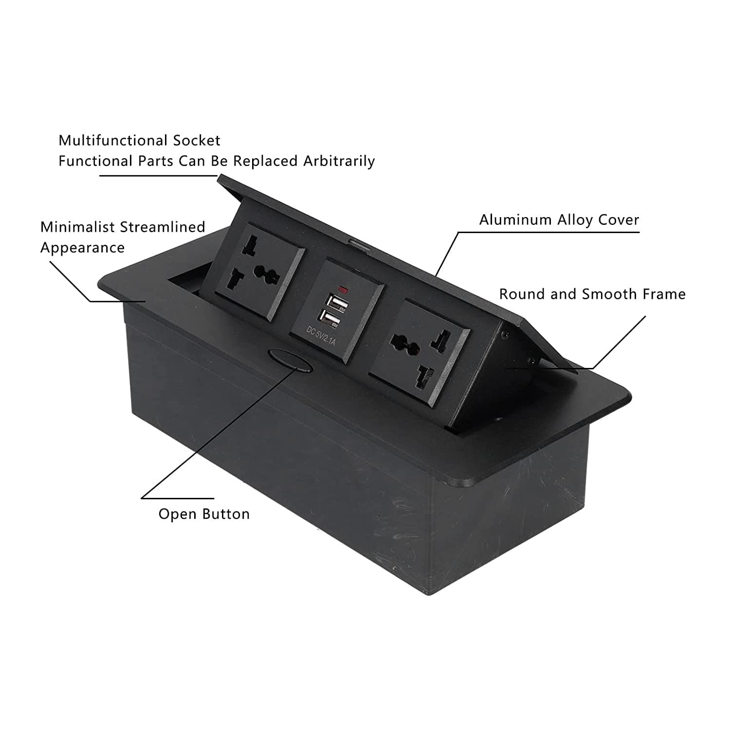 - INGENIOUS DESIGN This desktop pop-up socket with a textured black face plate. Hard wired into power source and used in conjunction with all Power to Power Cables. Pop up slowly in 45 degree with damped spring structure. After press the button to open the socket, you can connect wires and USB charger.