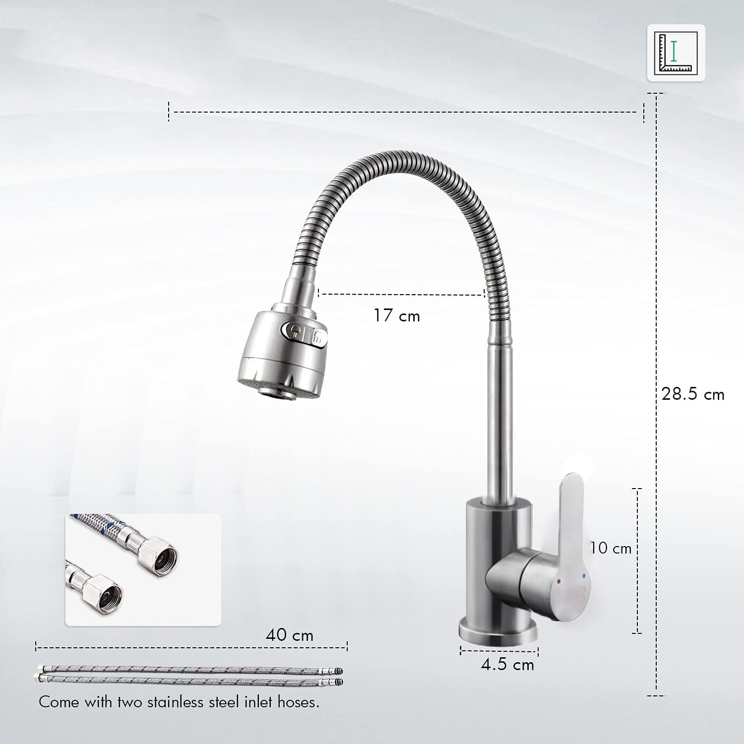 360° Swivel Kitchen Sink Mixer Tap, Single Lever, 2-Mode Spray, Metric Size