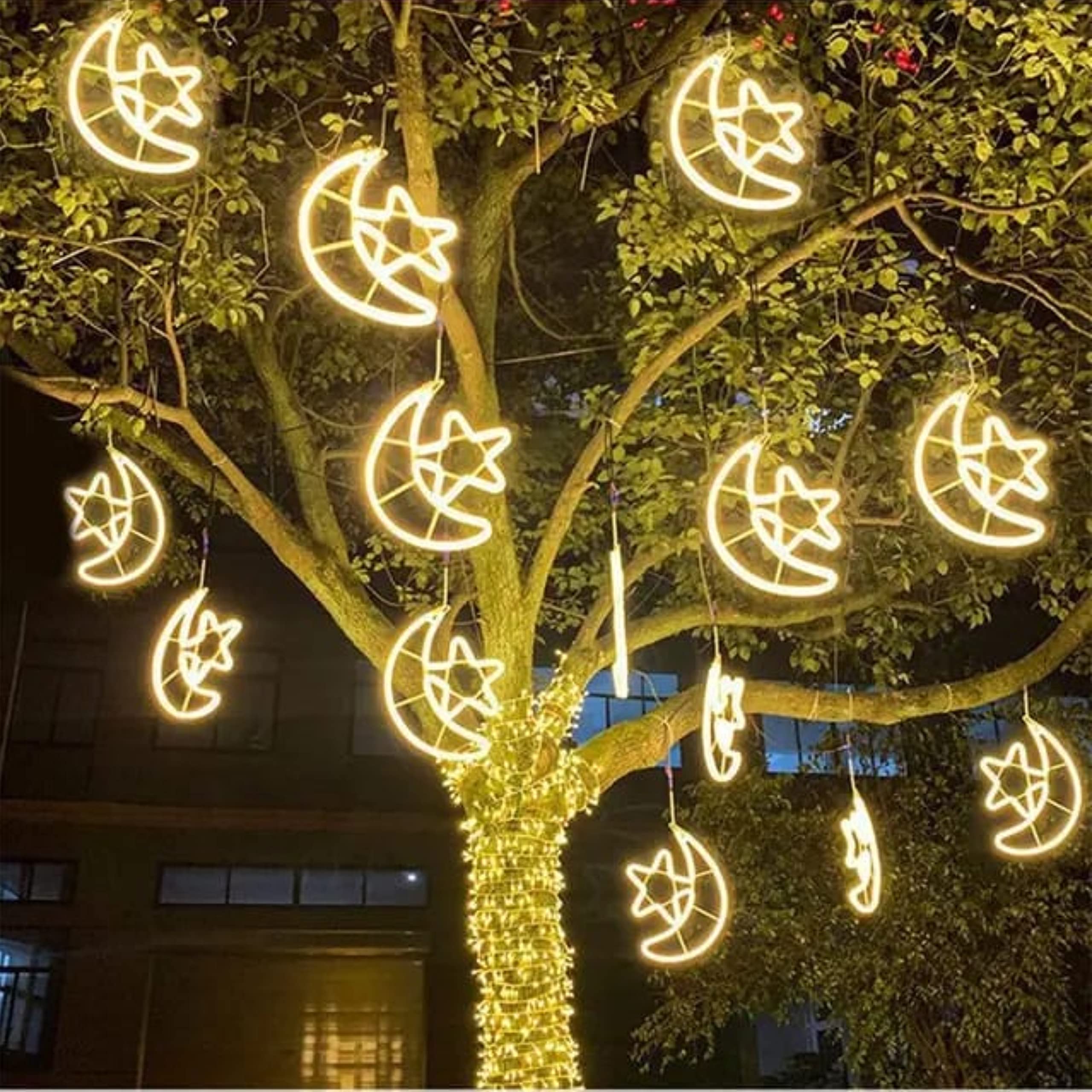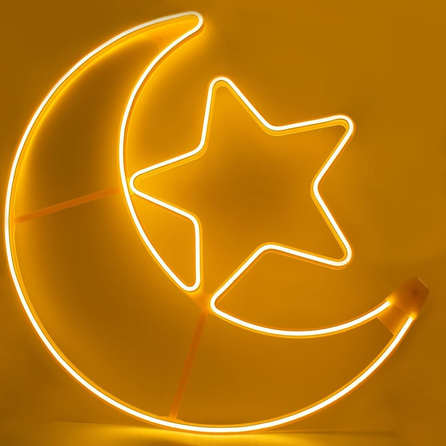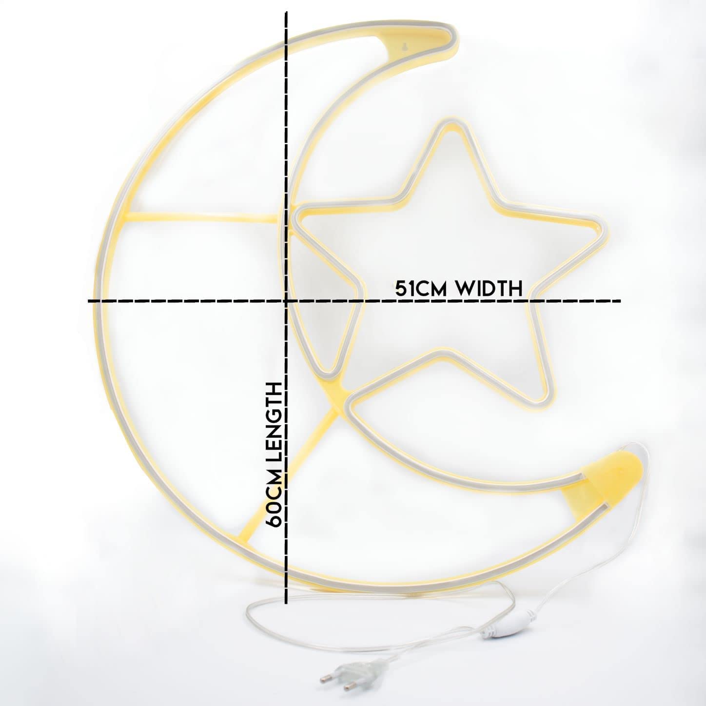 A sturdy and grand Ramadan Ramadan Crescent Moon with Star LED light Decoration for your Home, Garden, or Store. The dimensions of the light decoration are 63cm x 3 cm x 54cm and the cord length is ~ 35 cm. Ramadan Kareem!.
