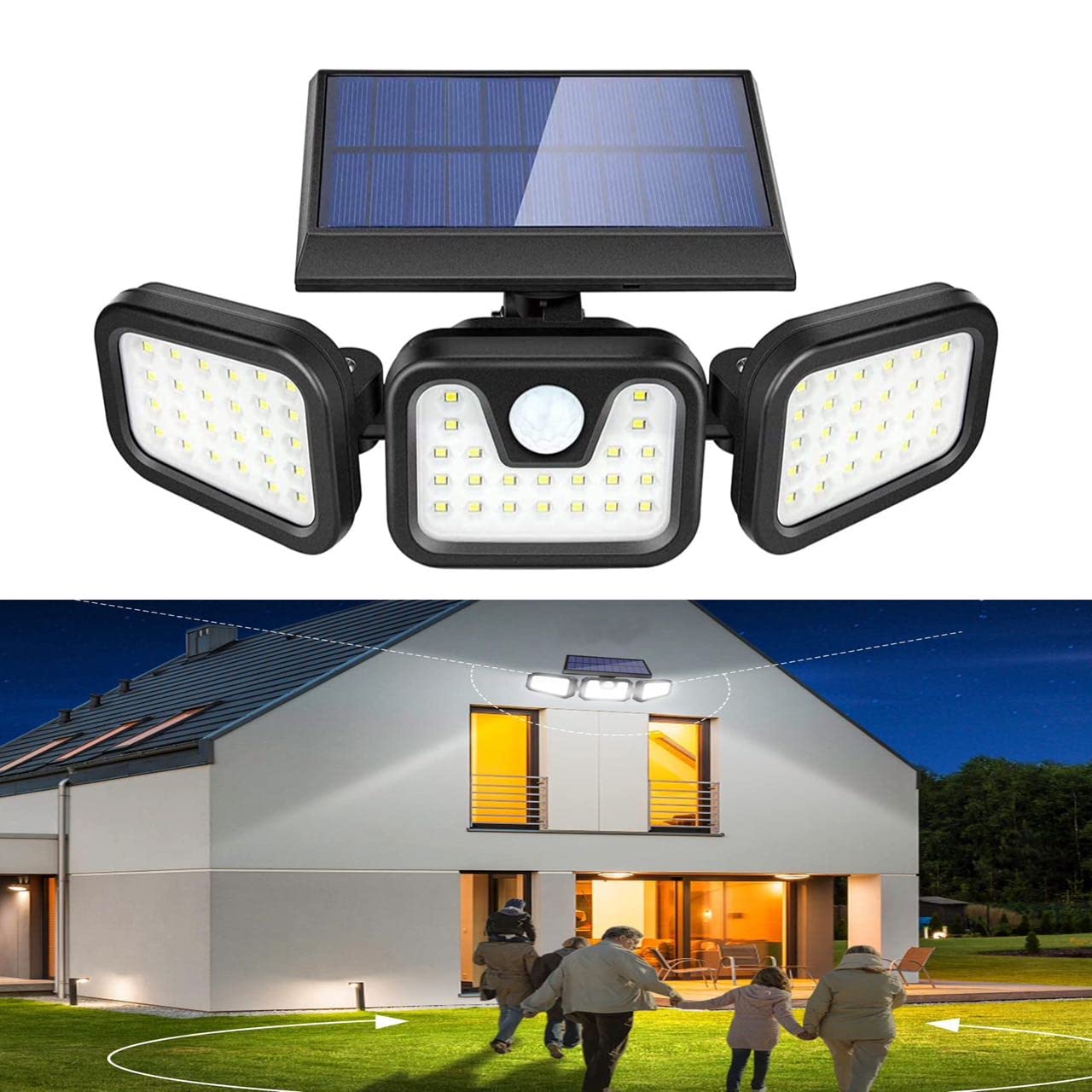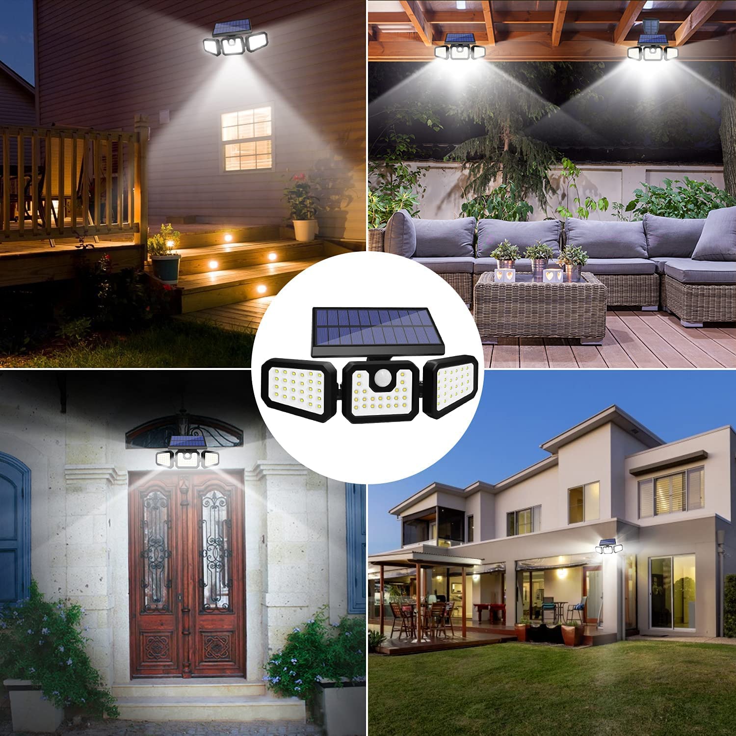 BetterChoice,BetterExperience. Our Solar Motion Sensor Light is brighter than other similar solar lights, has lasting and consistent in a good performance. By choosing our product, you will have a uniquely wonderful experience. Its outstanding quality standards provide efficient lighting and add extra safety to your house. Our solar security light with the three heads design, equipped with 74 super bright LED beads, produces up to 800lm 6500K high brightness output and good heat dissipation. The conversion rate of our upgraded polycrystalline silicon solar panels is as high as 20%. Incredible photocell efficiency, also working great in winter.