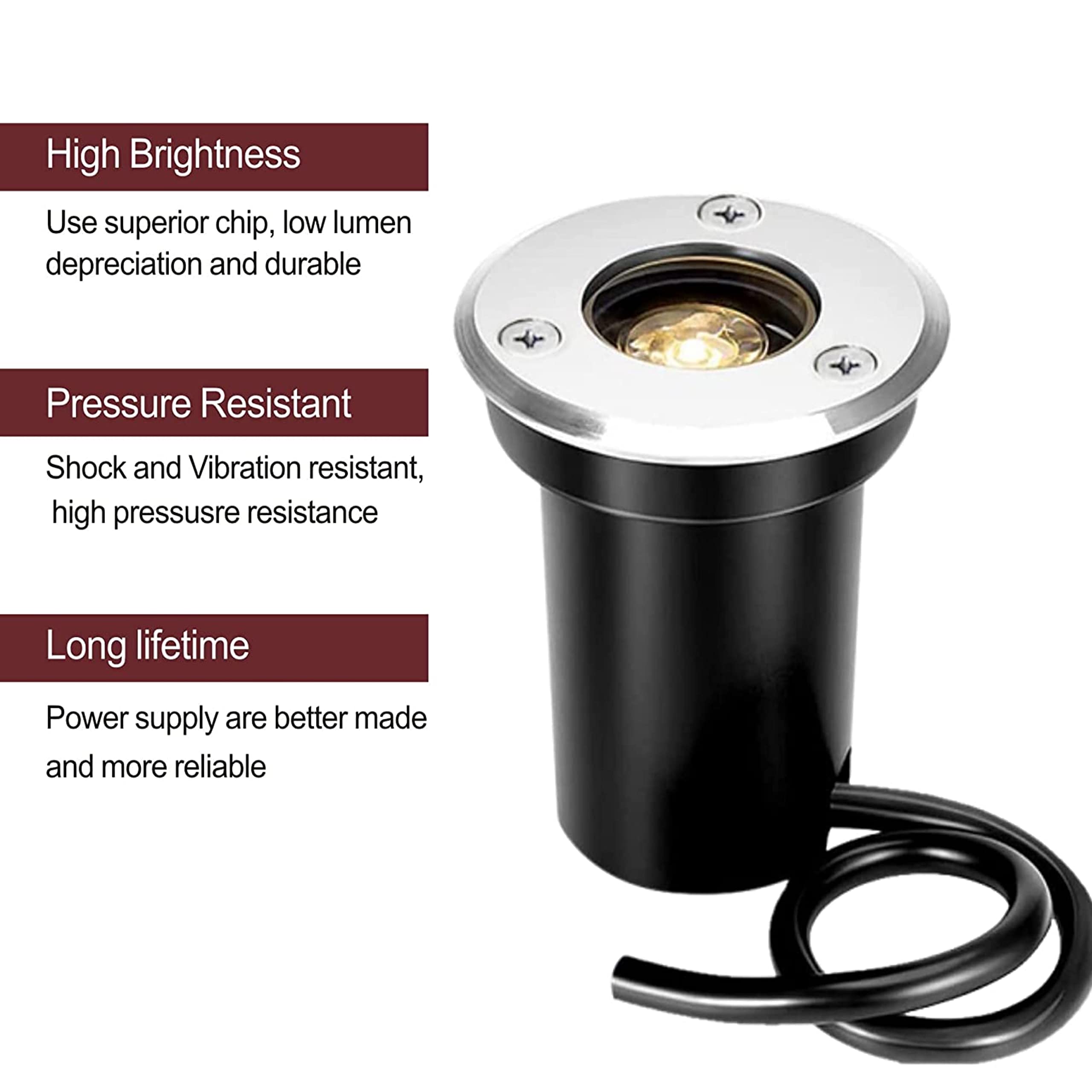 underground interlock lighT led Underground Light Lamp High-power Tempered Glass Outdoor Ground Garden Path Floor Stair Yard Spot Landscape Lamp IP67 Water Resistant (White, 1 watt)