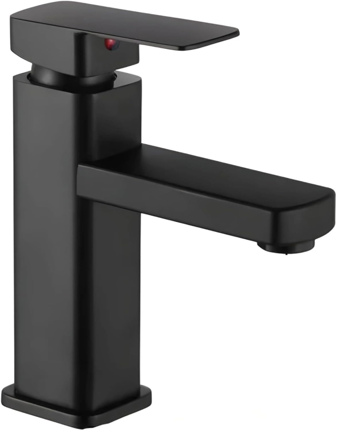 Water Tap Sink Counter Waterfall Bathroom Sink Water Tap Basin Mixer Hot & Cold Tap Deck Mounted Square Mono Single Lever Faucet (Black)